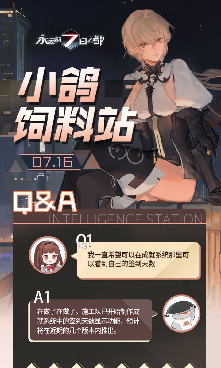 期待已久的饲料站到来!今天的饲料站不仅给大家带来新圣诞活动「圣诞霓虹夜」的新情报,还有「幻彩祭」和圣诞主题时装的最新消息,以及新一批神器使加强的名单,精彩内容即将奉上赶快和7都督一起看吧!小鸽饲料站以上就是本期饲料站的所有内容~是否解决了指挥使的一些疑惑呢?大家有什么问题想要小鸽回答的,都可以在文章下方留言,或微博私信@永远的7日之都,下期饲料站我们不见不散!