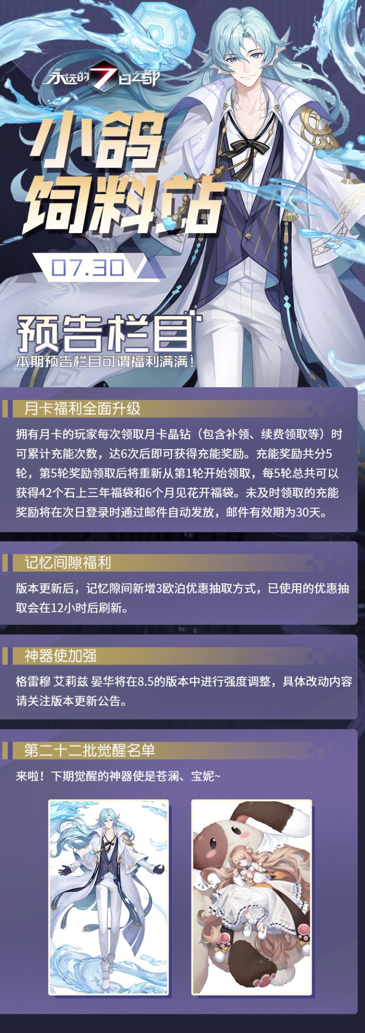 小鸽饲料站 | 神器使迎来增强,月卡充能奖励上线