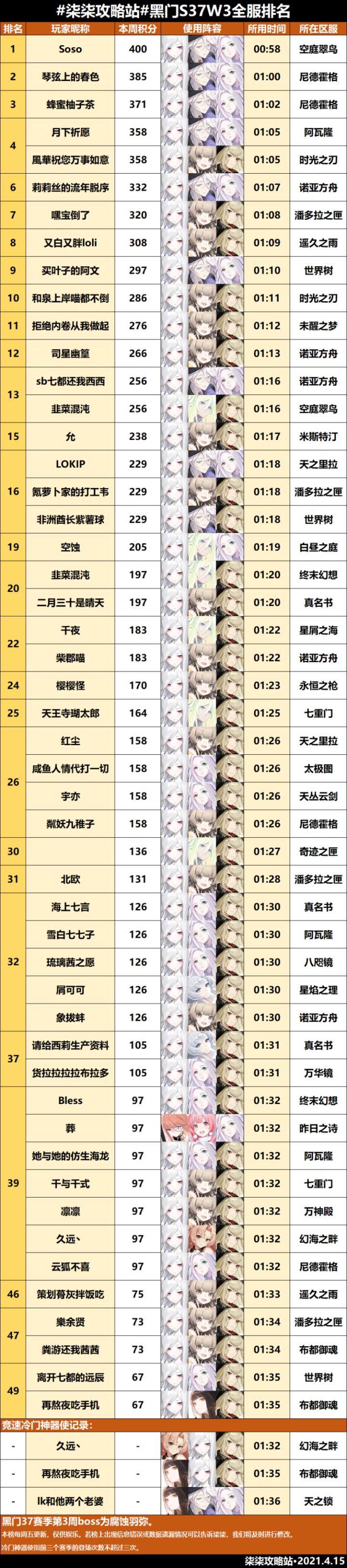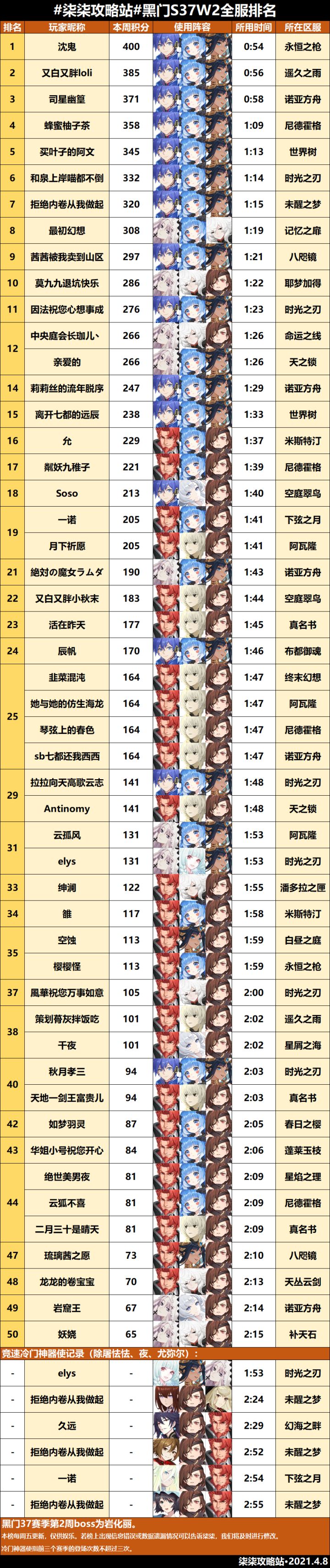 黑门试炼第37赛季第3周全服排行榜