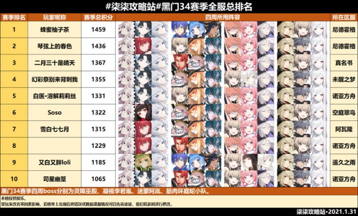 黑门试炼第三十四赛季全服排行榜