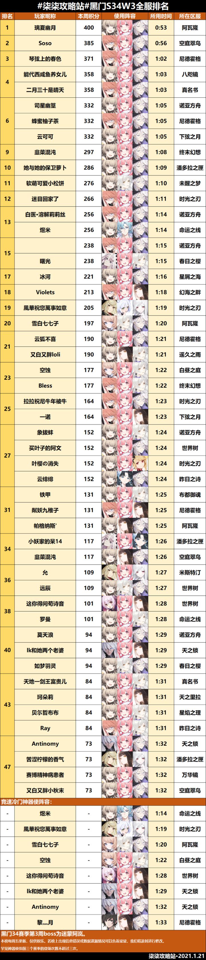 黑门试炼第三十四赛季第三周全服排行榜