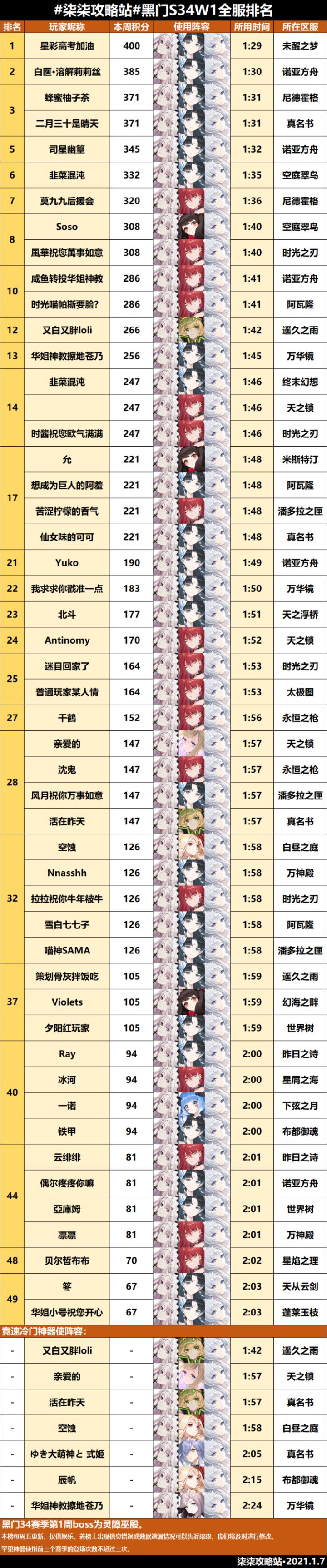 黑门试炼第三十四赛季第一周全服排行榜
