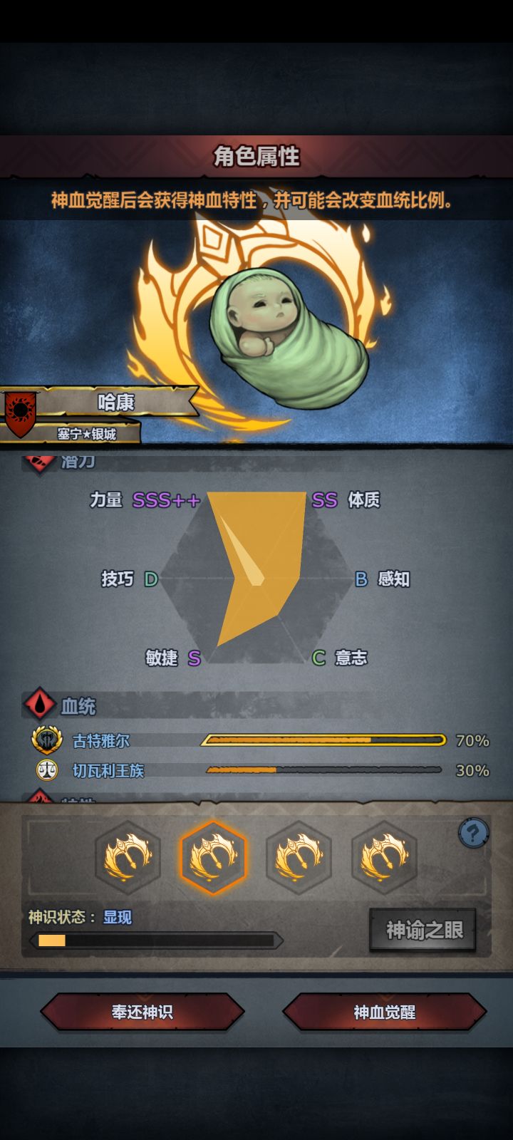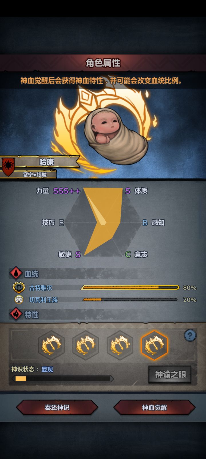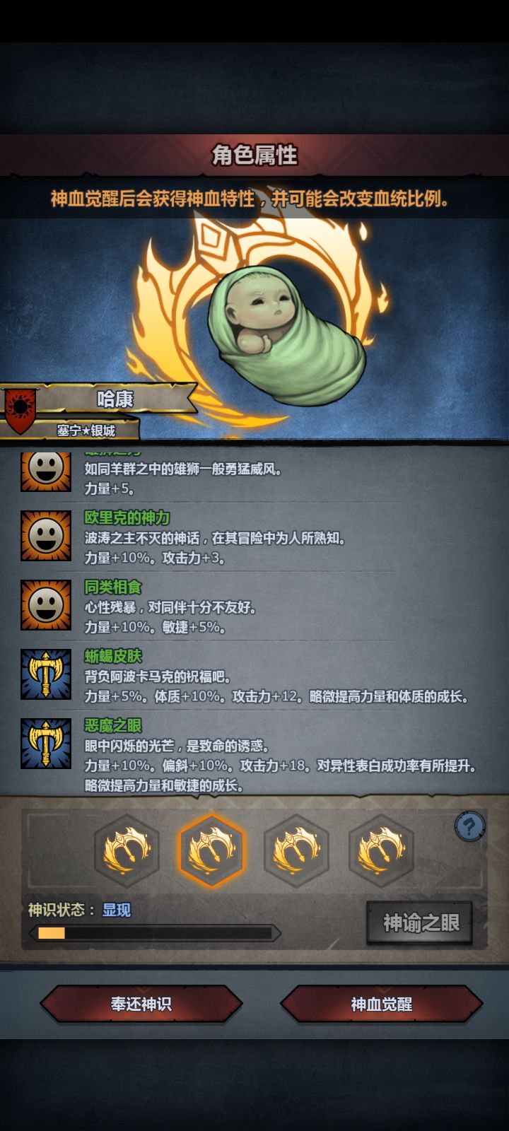 由于混血的难度,这里用鲨之眼作为注入神特1,神特2古特之王对比蜥蜴皮肤按照8/2混血极限潜力计算,作训练所学霸主将门理想+19点力量,转职狂战士+12点力量,新兵自身1点力量,记32力,此为不加入百分比特性和数值神特的基础力量。注意!力量精通使每1点力量提供0.75点攻击力狂战士职业力量成长为1.0345,8/2古特神子极限力量成长1.28,极限传家宝42+44力神特鲨之眼+0.2力、蜥蜴皮