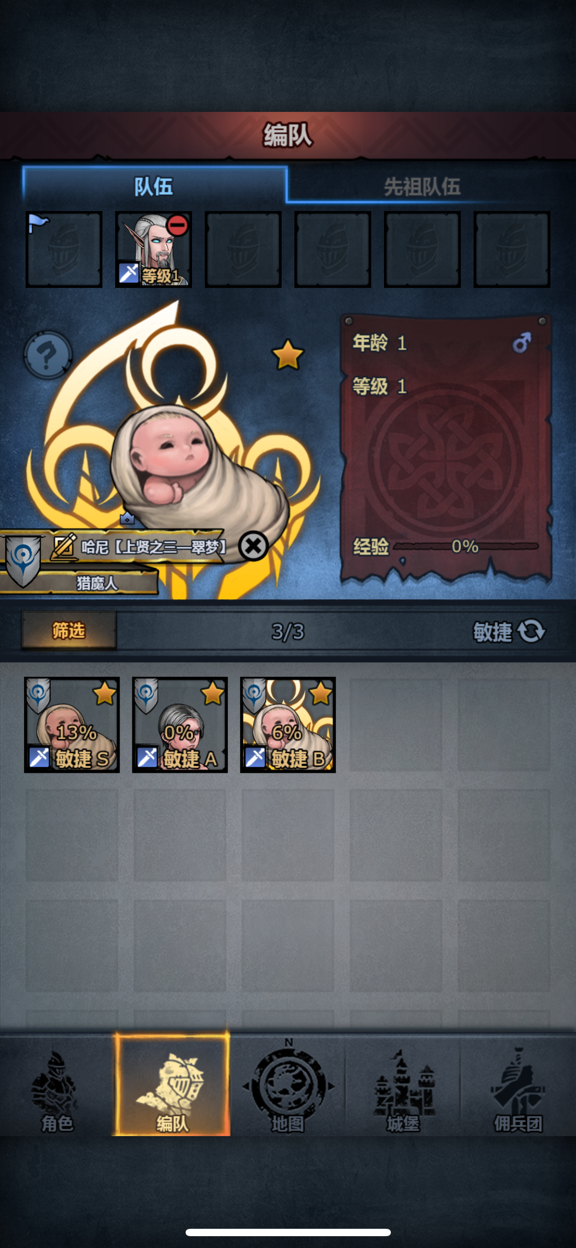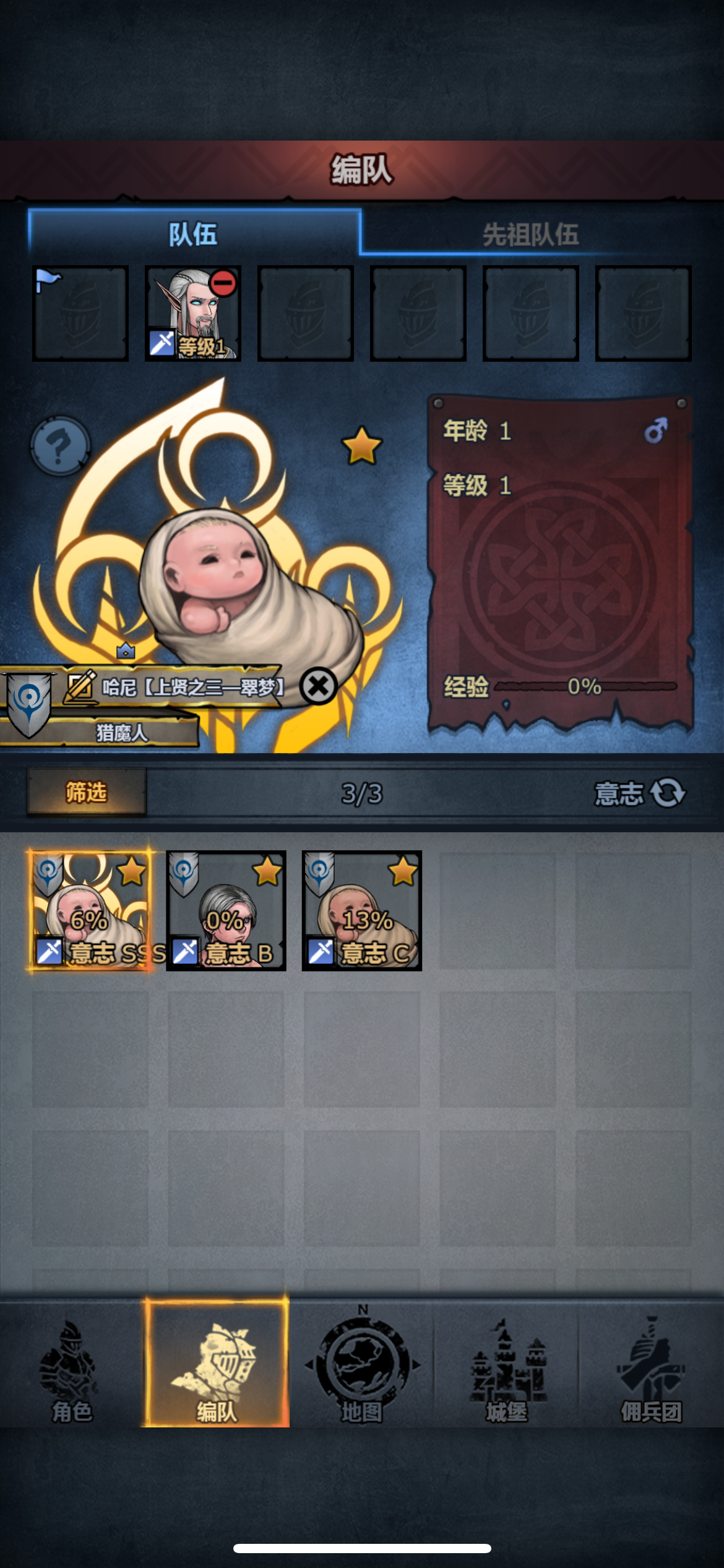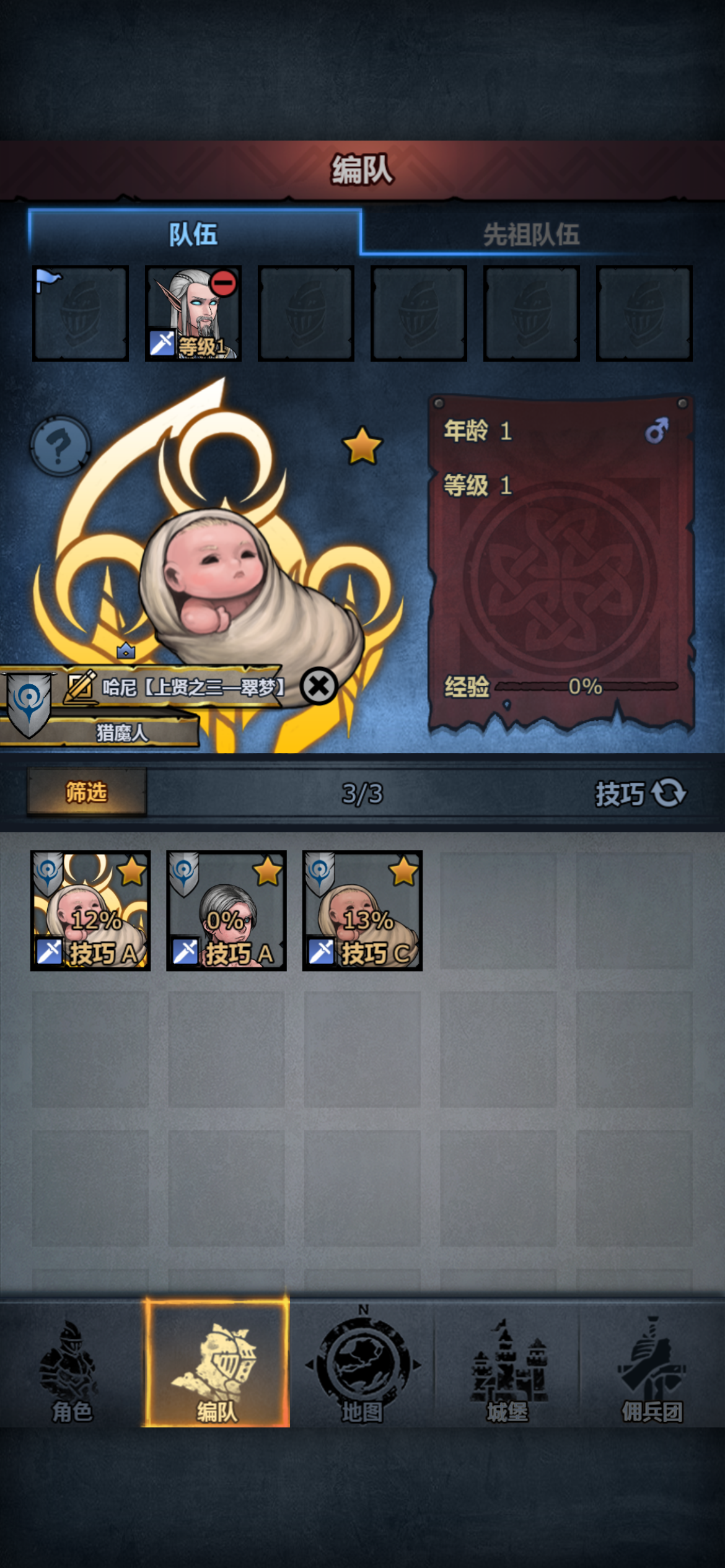主线剧情配置:双斥候+长弓手,经过97个月的训练,等级大概在40级左右,基斯等级略低,这个配置能轻松过第四章及骑士竞技场,本次主要讲解小公主的转职盾勇小公主转职路线:1级见习骑手→13级轻骑兵→18级重骑兵→19级转职方阵步兵补2体转盾弩,出剧情转盾勇此方法相较于以前重步→方阵→盾勇而言力技体更高,能更早职业精通,且25级有概率学习“坚守本能”(盾勇必要技能)进入林谕村,小公主入队,转职