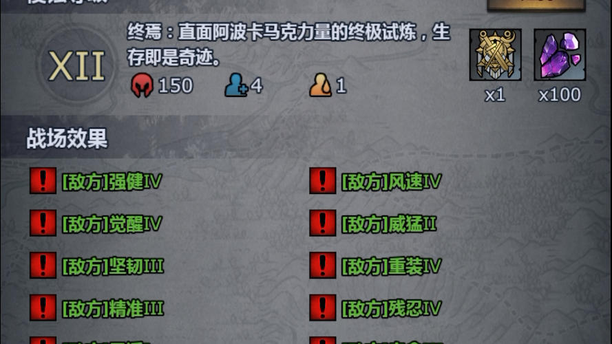 芜湖~23回合重开七八次完美达成无兽王号角,em要1000钻,我有就花了根本没有存过这么多…配置:长子次子皇骑带圣旗(禁攻击),主动技能用牺牲援护王禁乔姆(带圣旗同样),同样带援护1级三转长弓的小公主,不转或者转其他的也成,具体怎么在这之前1级三转有攻略的三个带饮血斧或者其他致伤的轻步工具人,20级左右能带的动武器就行,我也想带更多奈何强制出场长子和次子乔姆一号位给到队长技战吼,回能