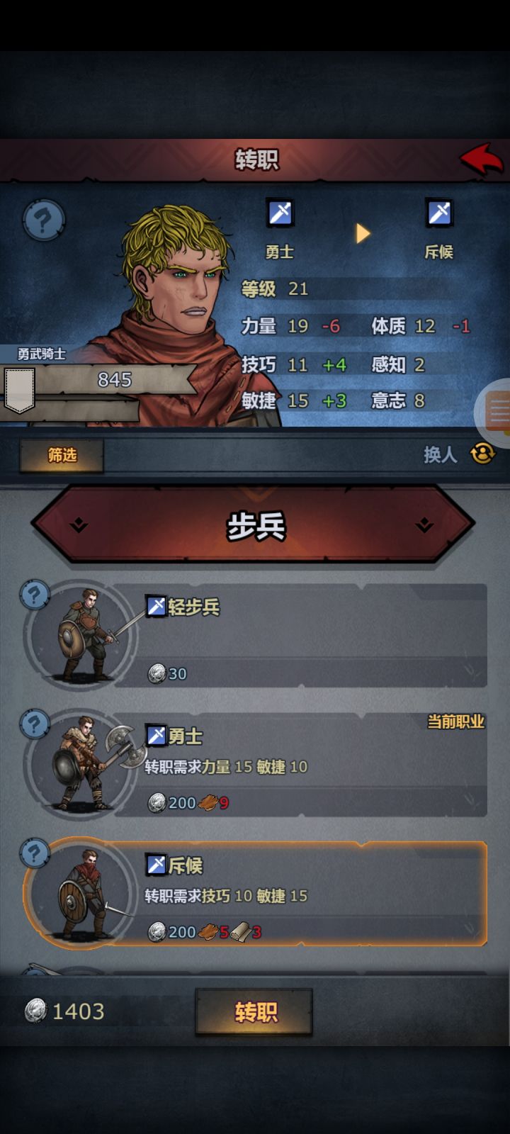 小公主转职路线(零氪)轻步兵(1~14级)猎人(14~15)弓箭手(15~16~18),这里要看情况只学到一级敏捷的话就要18级转斥候,学到二级的话前面14级就能转弓箭手,16级就能转斥候,16级转斥候的话,后面可以省掉很多资源;斥候(18~21/22)游侠(21/22~29)到这里的时候,如果你只有一级敏捷你就会发现少一点力,这个时候只需要转职一下决斗士就会补齐这一点力,当然这就需要玛夏声望,剧