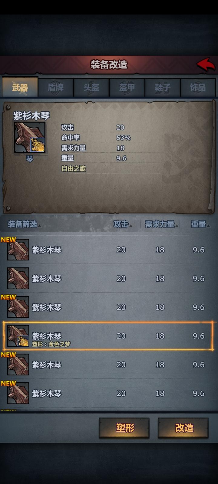 我以前还塑过这个金色之梦,这装备还在栏位里躺着呢,怎么就不能塑形了?