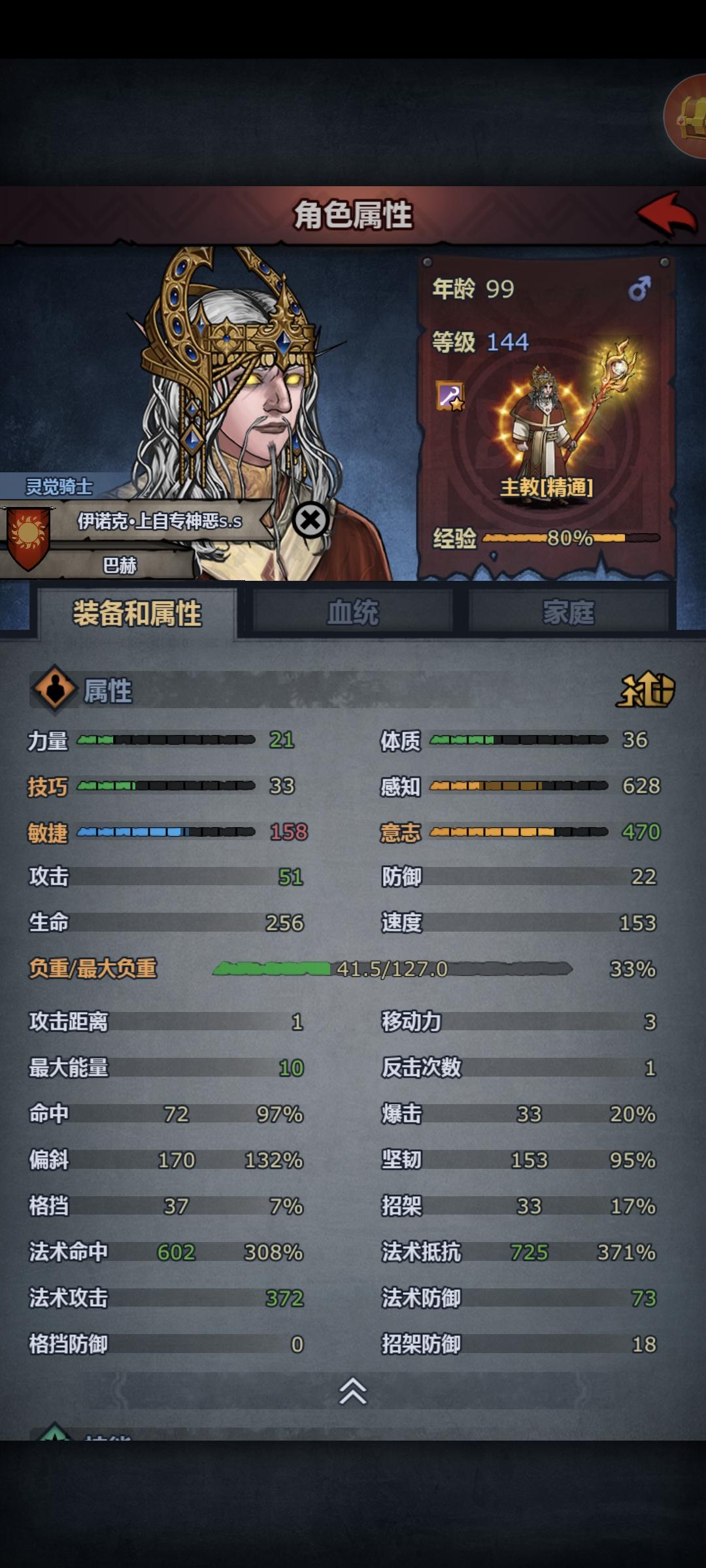 法术抵抗数值给的太随便了吧?上自专神雷主,602命中也不算低,竟然打对面雷主一直零伤害,他反击也零伤害。(这里不是讨论怎么过,换掠骑加法拉圣物肯定也能过)对面是黑精甲和书87.5%抵抗。最近精灵神子很火,我也在思考感意属性分配,但结论就是意志属性完全一坨,因为游戏里面法命和法抗数值给的太随意了。比如一个符文62法命,橡木之心200+法命,法抗数值给的更是极其夸张,想老老实实靠意志来撑属性简直