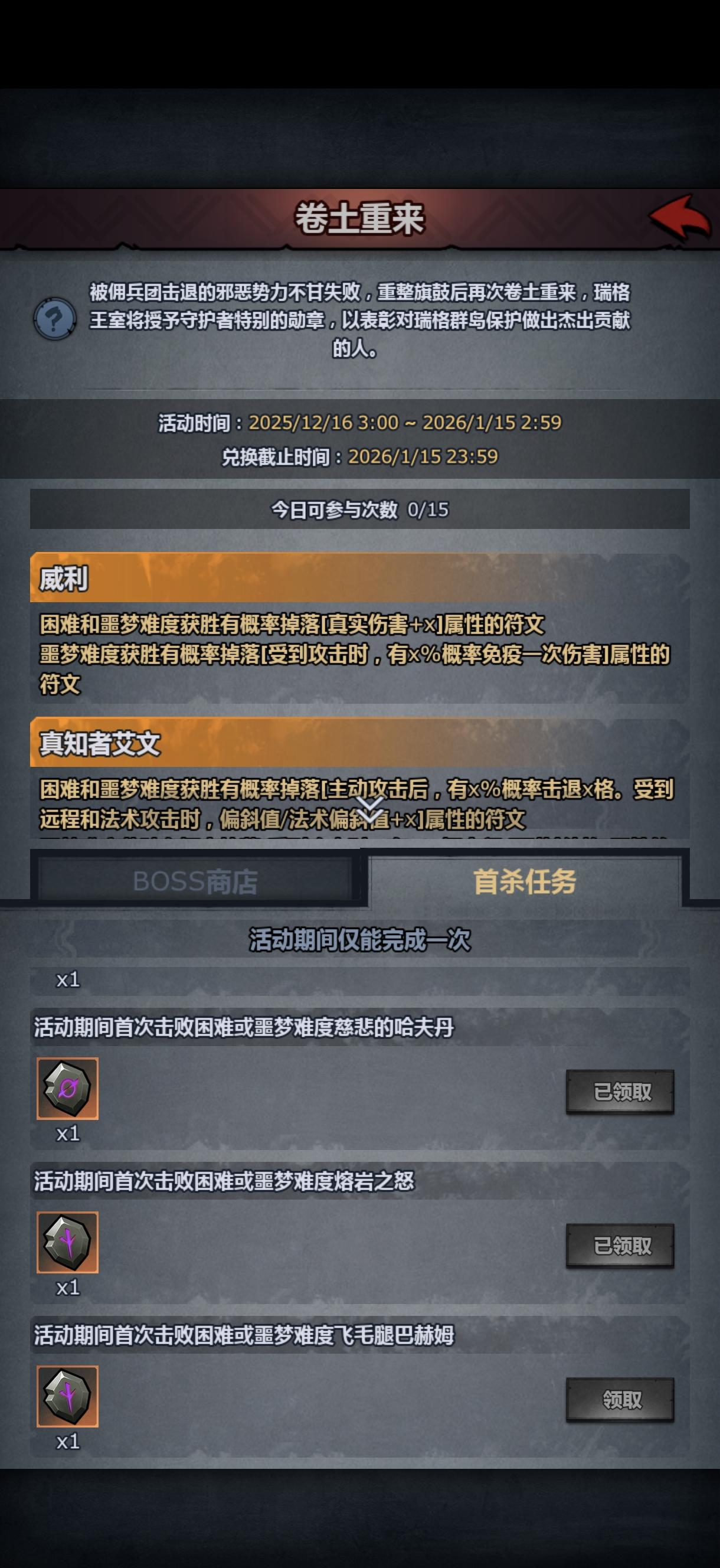 请教下,为啥最近这轮的卷土重来每天打3次就没法再打了?是周年庆期间特殊限制吗?