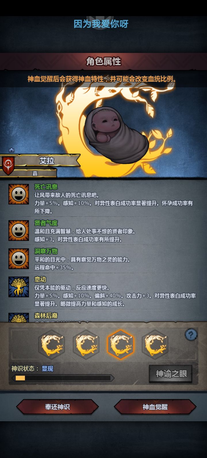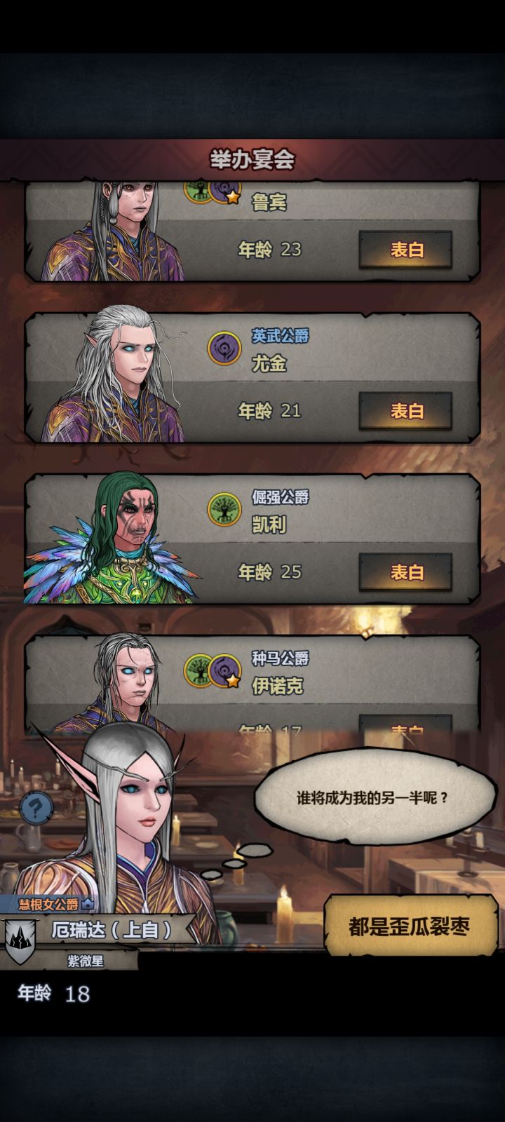 一直没上自专苗子,之前精灵伯爵太消耗相亲低质低效,就全放弃了,现在公爵略有起色,但法队几乎都老了,雷主更是356时日无多,所以选了个上古苗子就做了