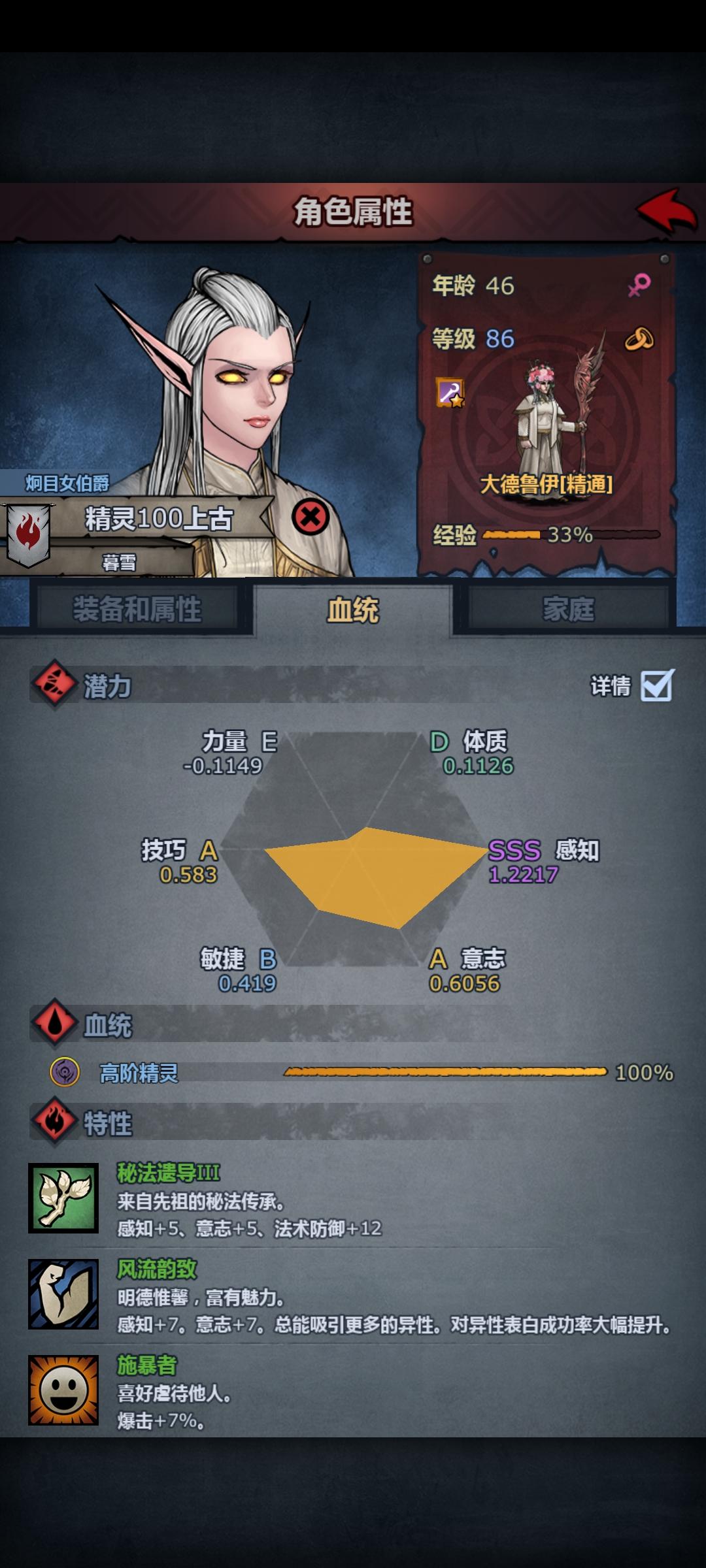 这个都快满级了,看到帖子说感知越高越好,意志伤害加成有上限我看我到底练哪个#