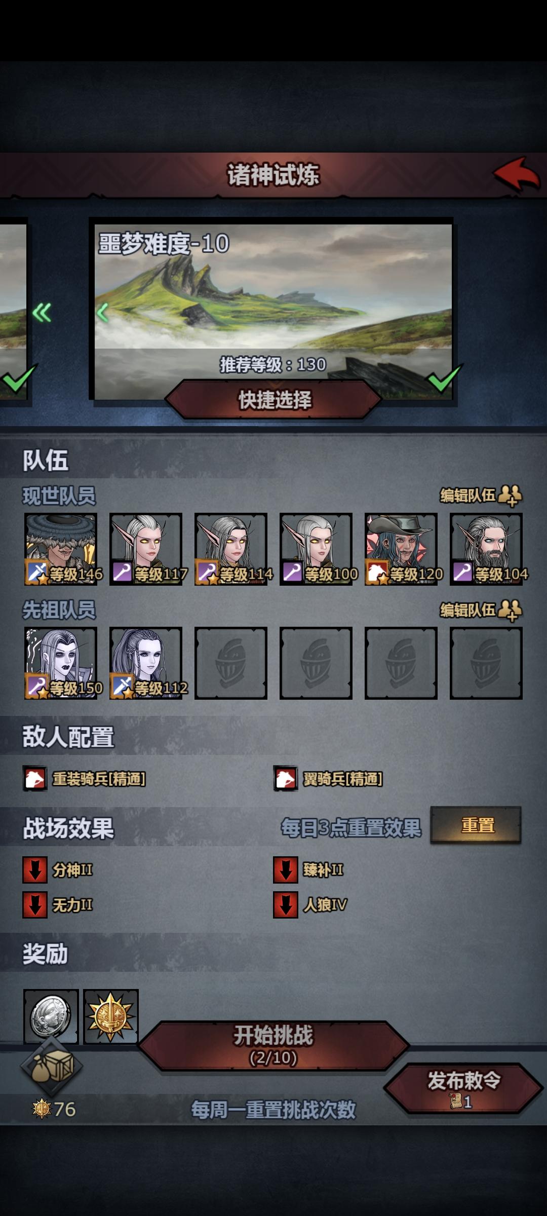 ,在狂战大人的带领下,周要塞也能打了,之前眼馋的诸神试炼也打完了,腰不疼了,腿也不酸了。就是混血出货太难了,如果能有混娃保底机制就好了。