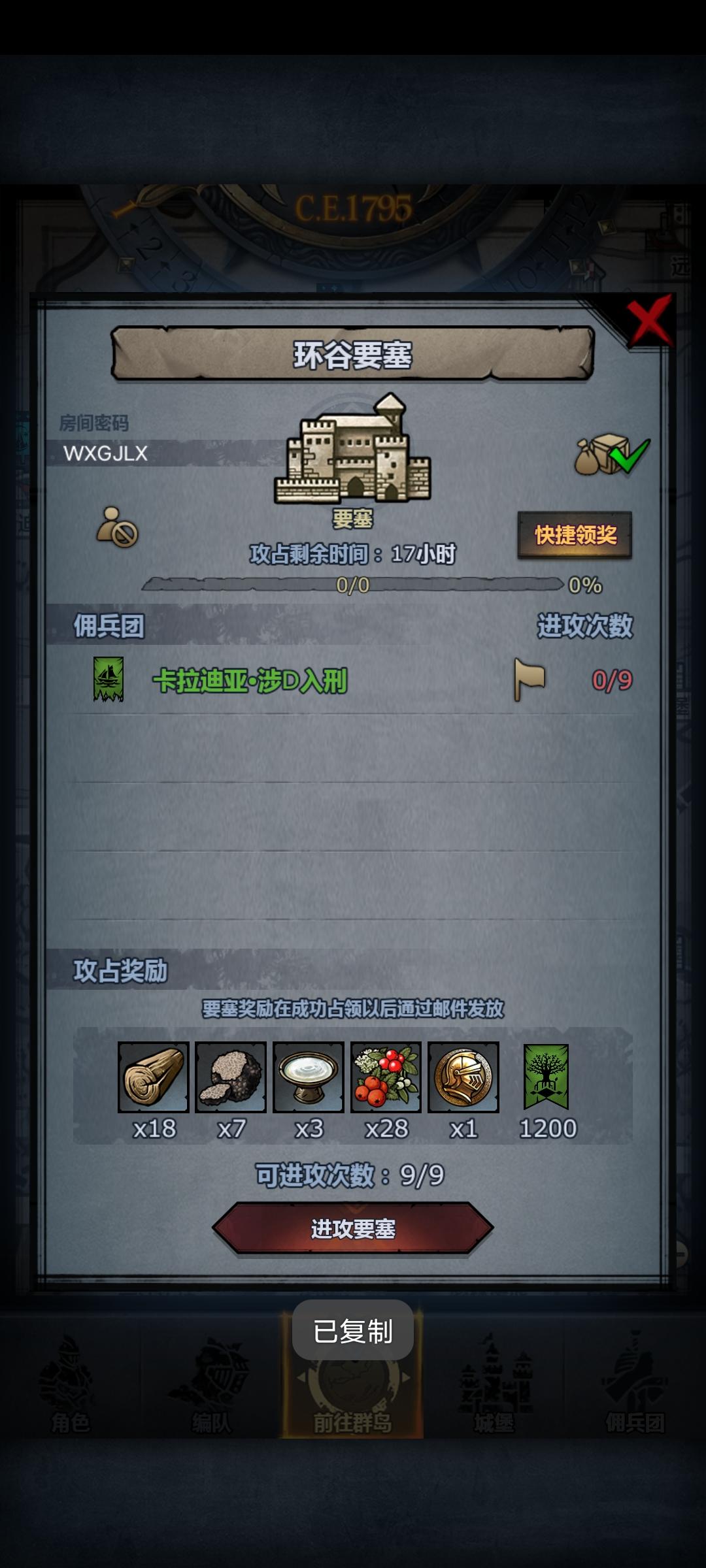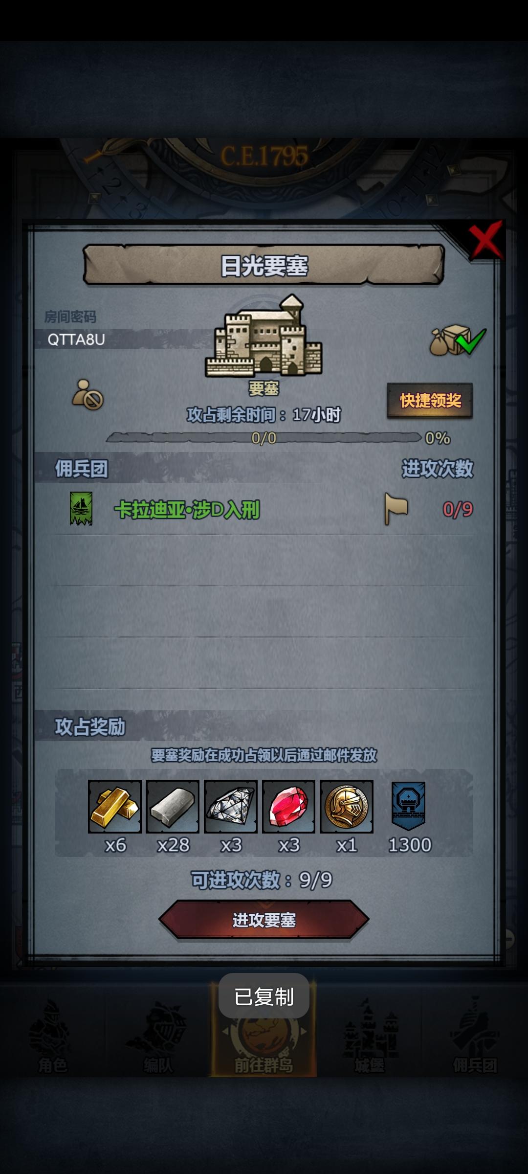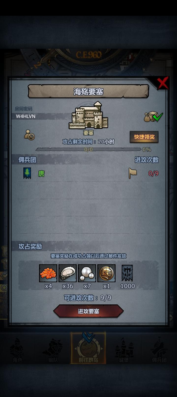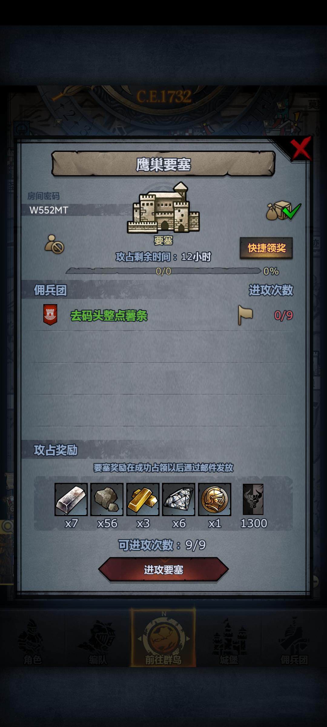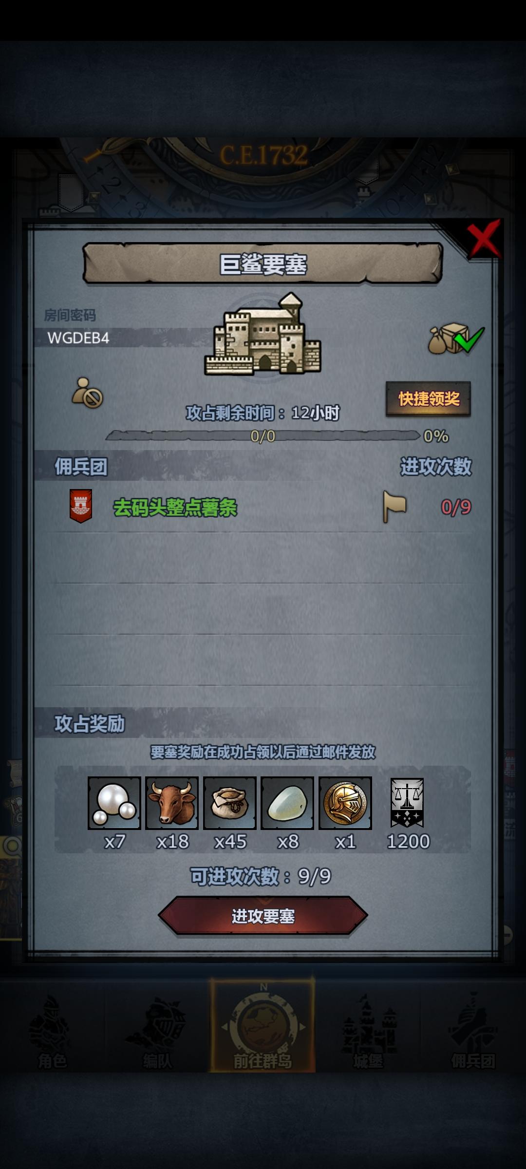 巨鲨:4TJNPT鹰巢:GVVJTS日光:QTTA8U环谷:WXGJLX大佬们上车手下留情,尽量等车满了再收主塔。可摸扶她:对塔(主塔副塔都行)的输出伤害大于主塔血量10%,就能拿全奖。注意:每期坐过的车(活动指定车),可以在要塞征服活动快捷扫荡。自己打或者快捷扫荡8次还能拿满每期活动奖励。