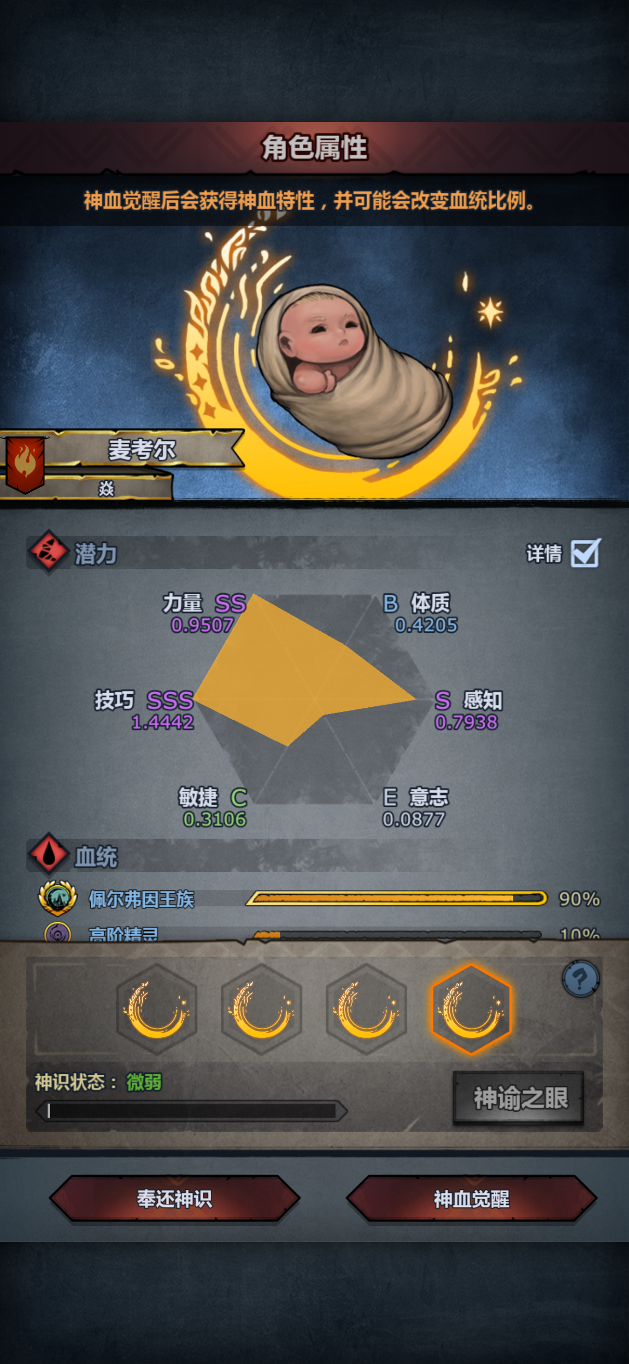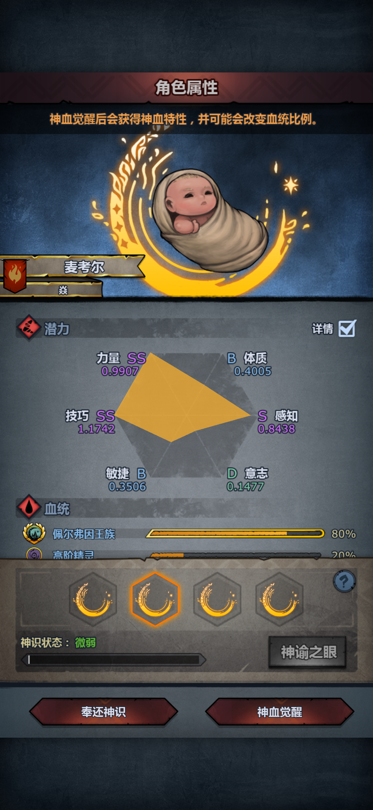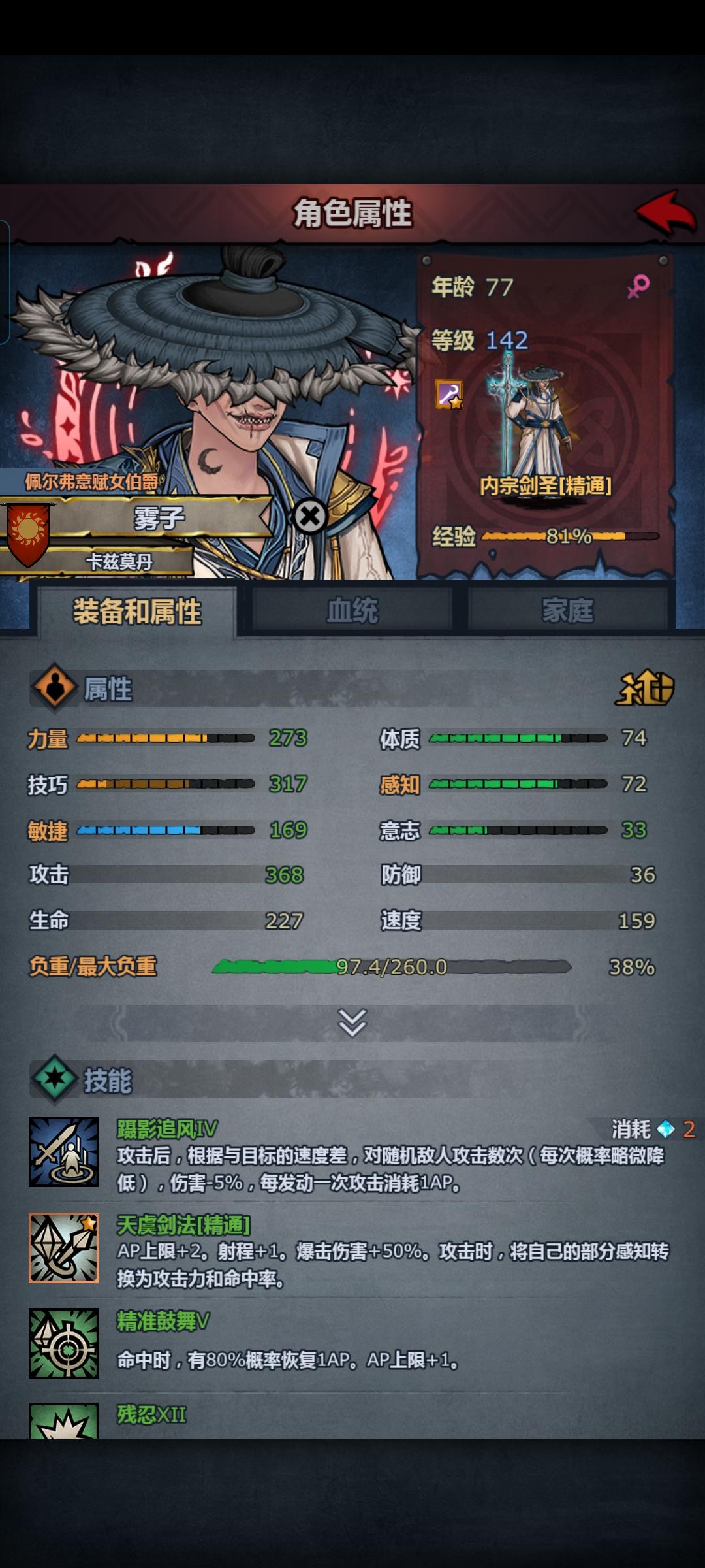 第一个佩神玩内宗要什么面板才妥。图是昨天的,没注入,意志低玩不了狩猎,但可以玩嗜血,断绝又不重,低体也行。我现在好后悔,现在刷了一个跟这个差不多的,要妥吗
