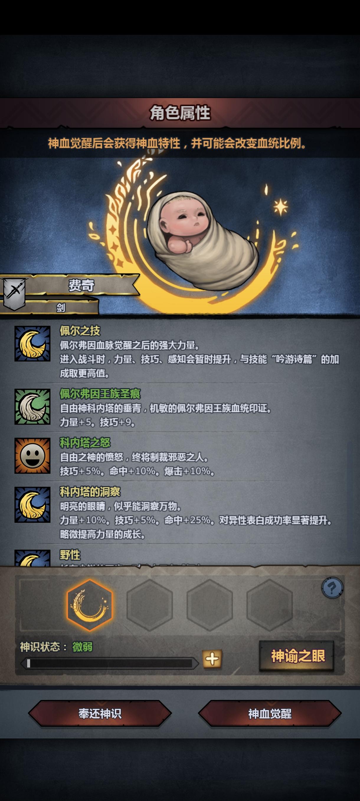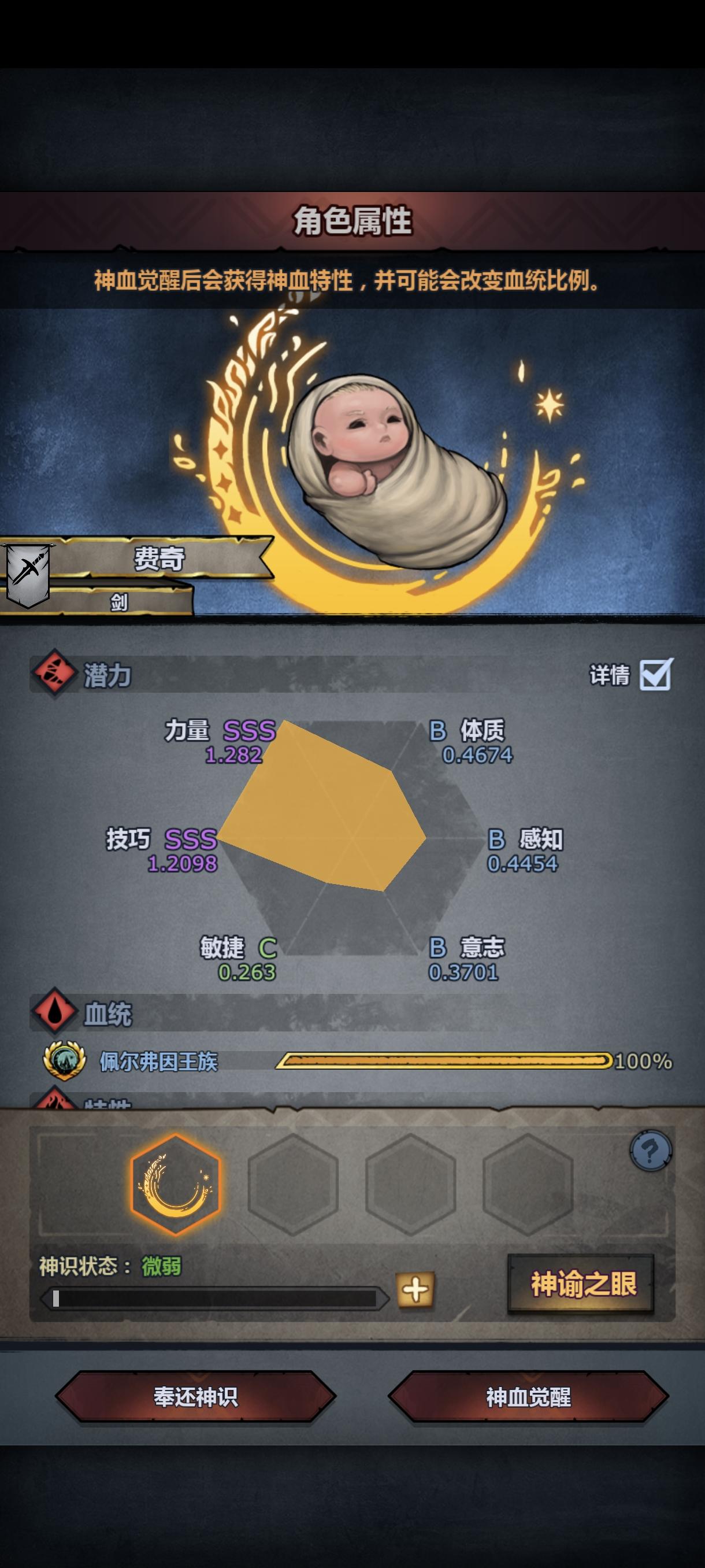 第一个神子,敏捷低了一点。但是意志和体质不错,是不是应该玩屠。玩屠的话是玩大剑还是剑圣,是玩噬血屠还是信仰屠。我就3把神器,晨光是给雷主玩的。#诸神皇冠后代 #诸神皇冠萌新