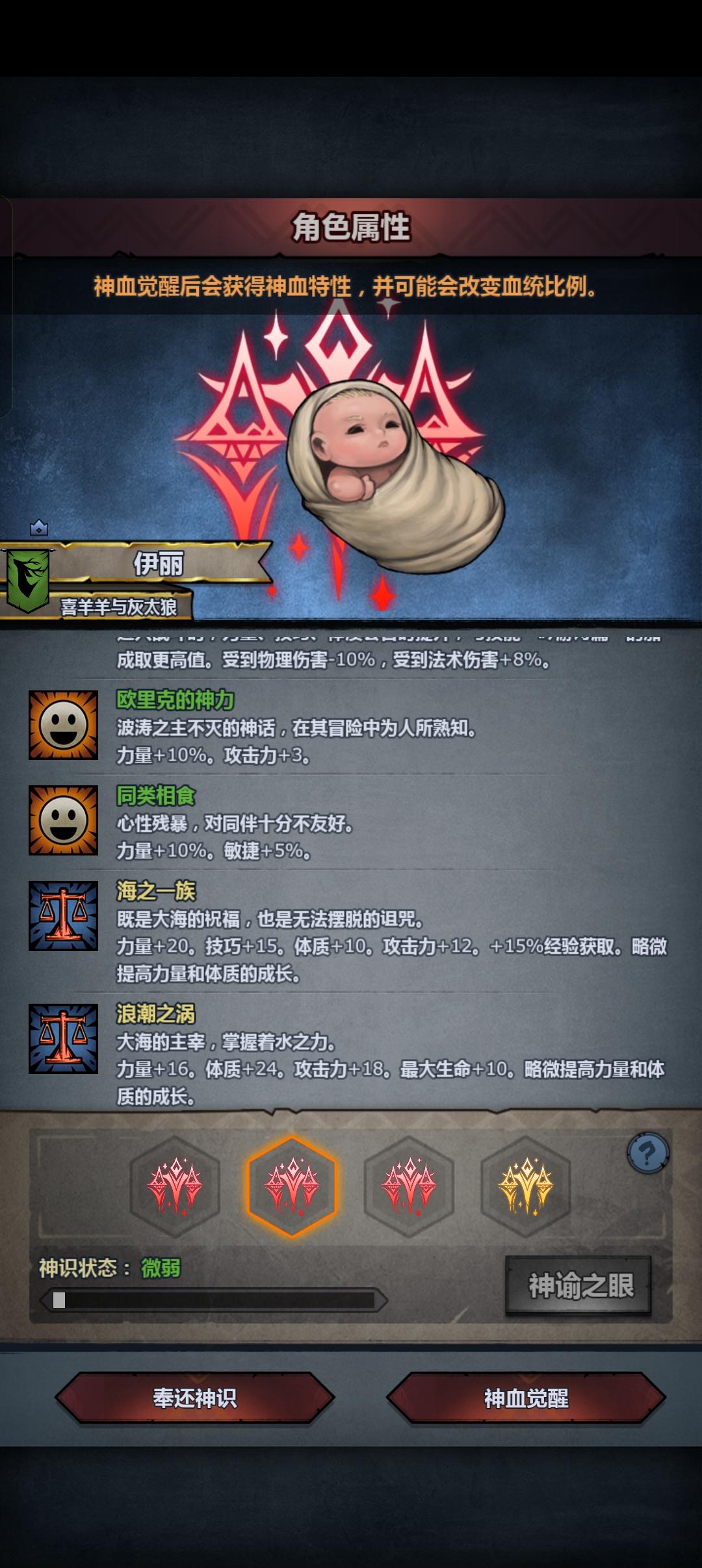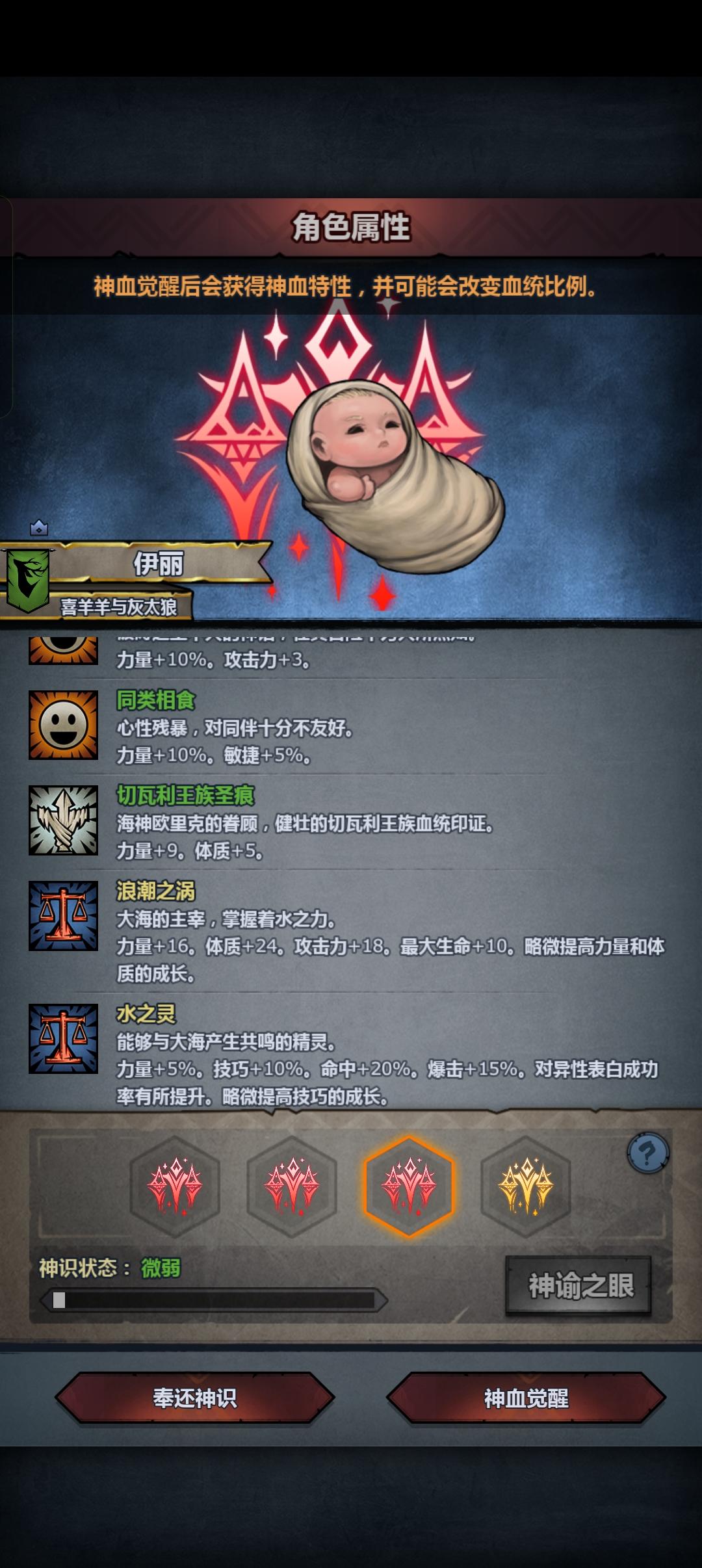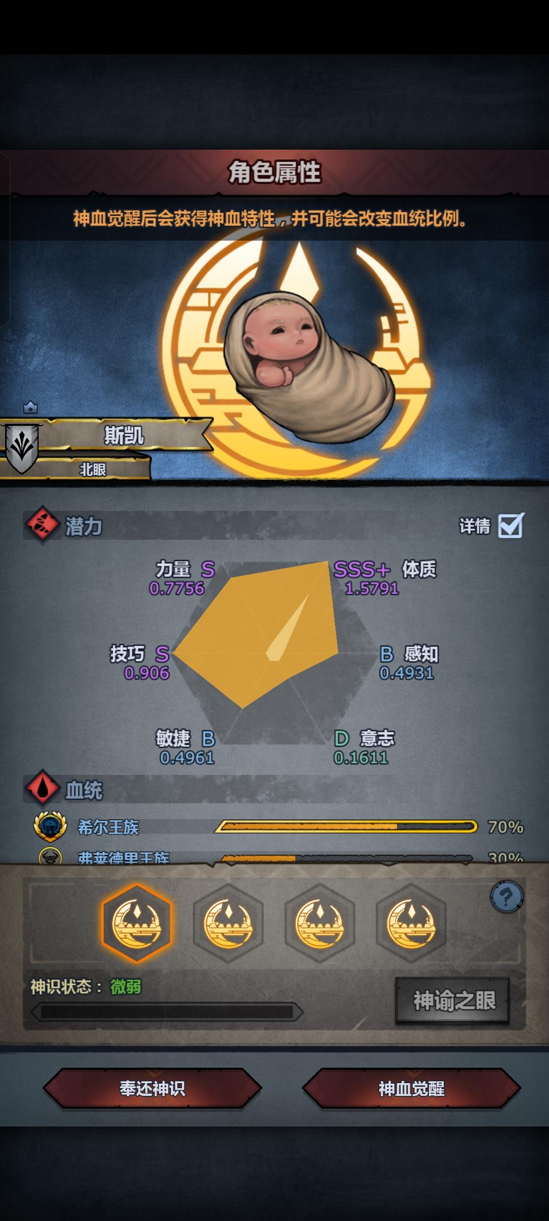 混完血之后,千万千万要把那些混血夫妻踢了,不然出一个极品真的会被气死…我这边突然弹出三个特性的sss力把我吓了一跳,还好没出完全,不然真的要退一段时间了,然后有个小问题,sss力同狮恶魔之眼➕一个神特是不是也还行?
