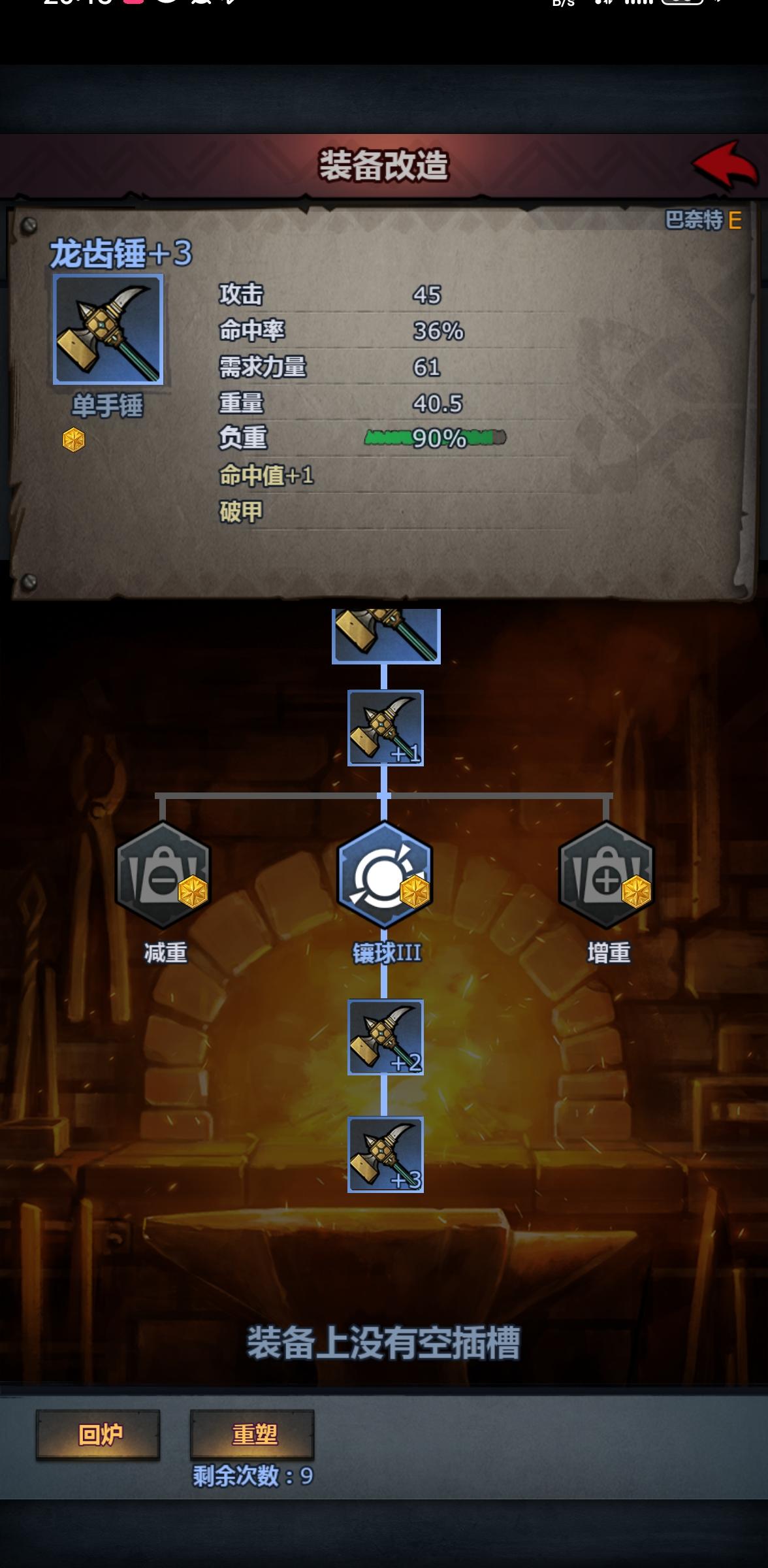 大佬们,这啥情况啊,为啥没有那个什么加能量的,我看攻略上后面还有三个选项,我回炉重造了一次还是这样,浪费了4快精金,没有钱造了#诸神皇冠
