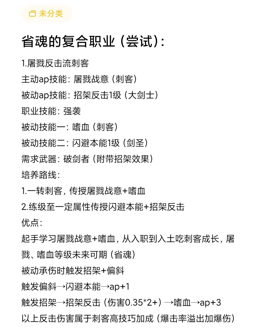 兄弟们这个想法怎么样?本人目前最多七盾任务,眼光不长,所以想了个这个。冥隙竞技场有在打,但是段位不高,得到的魂少,想整屠系只能刺客本屠,嗜血三断屠概率大,这个操作可以得到嗜血四/五,闪避本能+招架反击是增加清图率,不至于断屠后挨打至死苗子选用力a,技s/ss,敏捷a/b的塞宁