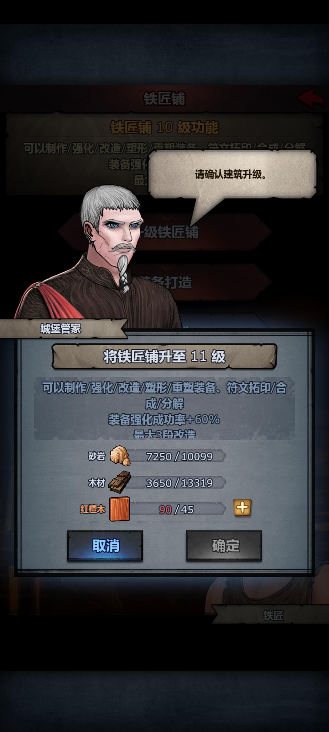 看了下其它建筑都不需要砂岩了。就铁匠铺需求多。想把几个次堡换了。