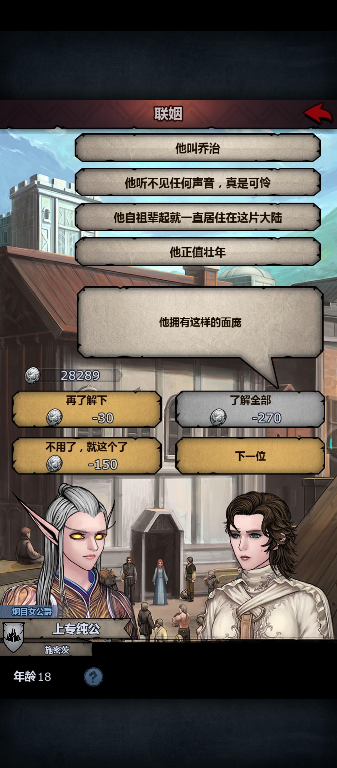 在游戏诸神皇冠之中主角可以自由的选择自己的妻子,可供主角选择的结婚对象有很多,例如女海盗赫达,占卜者罗琳,女孩艾美莉亚以及其身后的两个女骑士。跟不同的女性结婚,主角的身份和地位也有大有不同,比如与女海盗赫达结婚可以获得感情与特殊血统。与占卜者罗琳结婚可以获得精灵血统与专属事业线,同时颜值很高。与两位女骑士之一结婚可以获得骑士爵位,以及一定比例王族血统。至于女孩艾美莉亚的话也就只有感情了。还有在