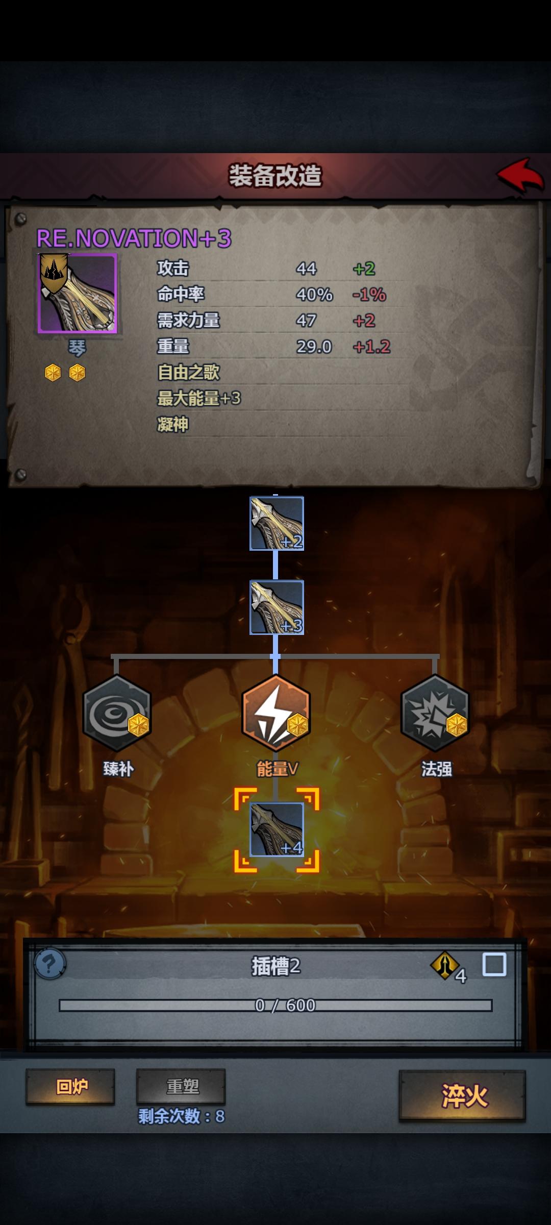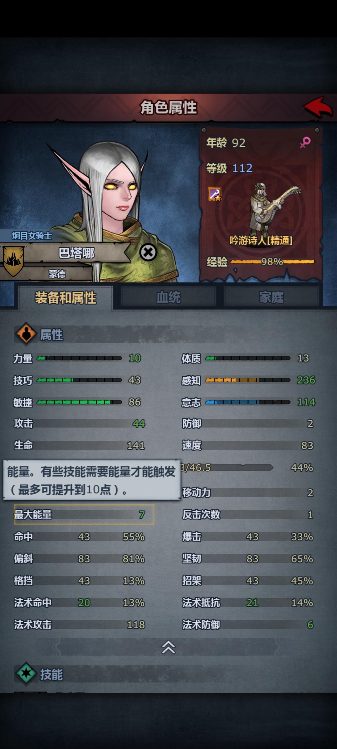 想做个能量琴解决副诗人能量上限的问题,省魂或者懒的升技能总之目前是七点上限7+3=10,达到10能量上限可选组合 3级自然+2级真意 不消耗魂 3级自然+2级信仰 消耗一魂算是物美价廉考虑传家宝属性,以改造完29重量为例29/3.5=8.2857考虑残年四维-80%,实际需求体为41.4285考虑做高体属性,仍需