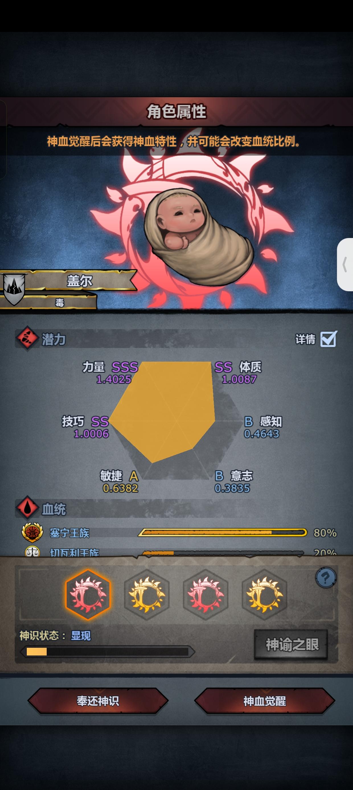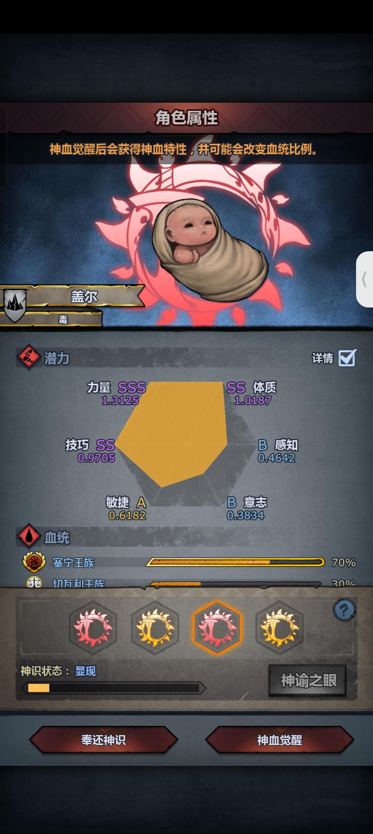 几年前退游的时候已经把赛宁肝满了,现在回坑看了下血脉,现在血脉纯的有塞宁,切瓦,精灵,法拉,佩尔,希尔,宏朝,但是不知道为什么,血很纯,给的属性很垃圾。现在玩的一头雾水,是要过支线剧情吗?好多职业没解锁。