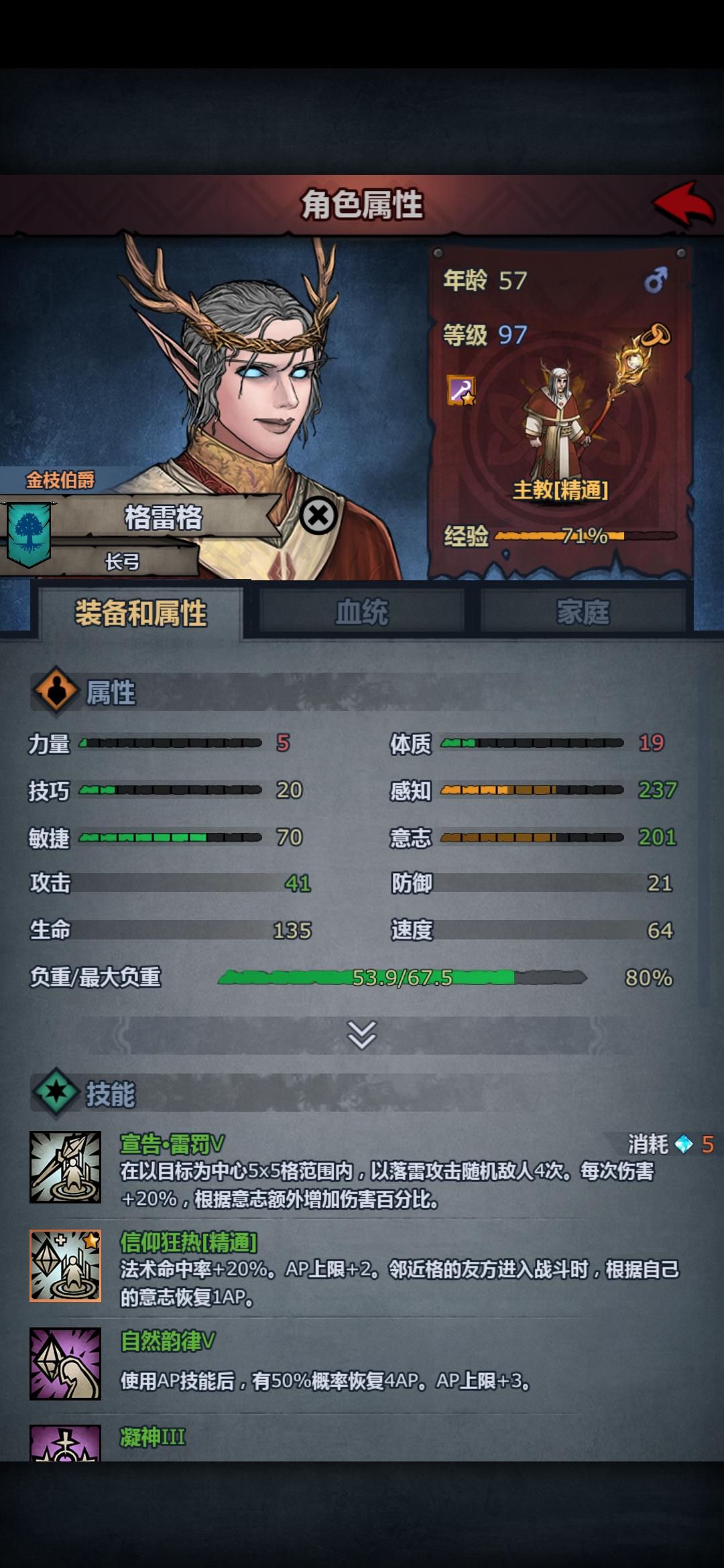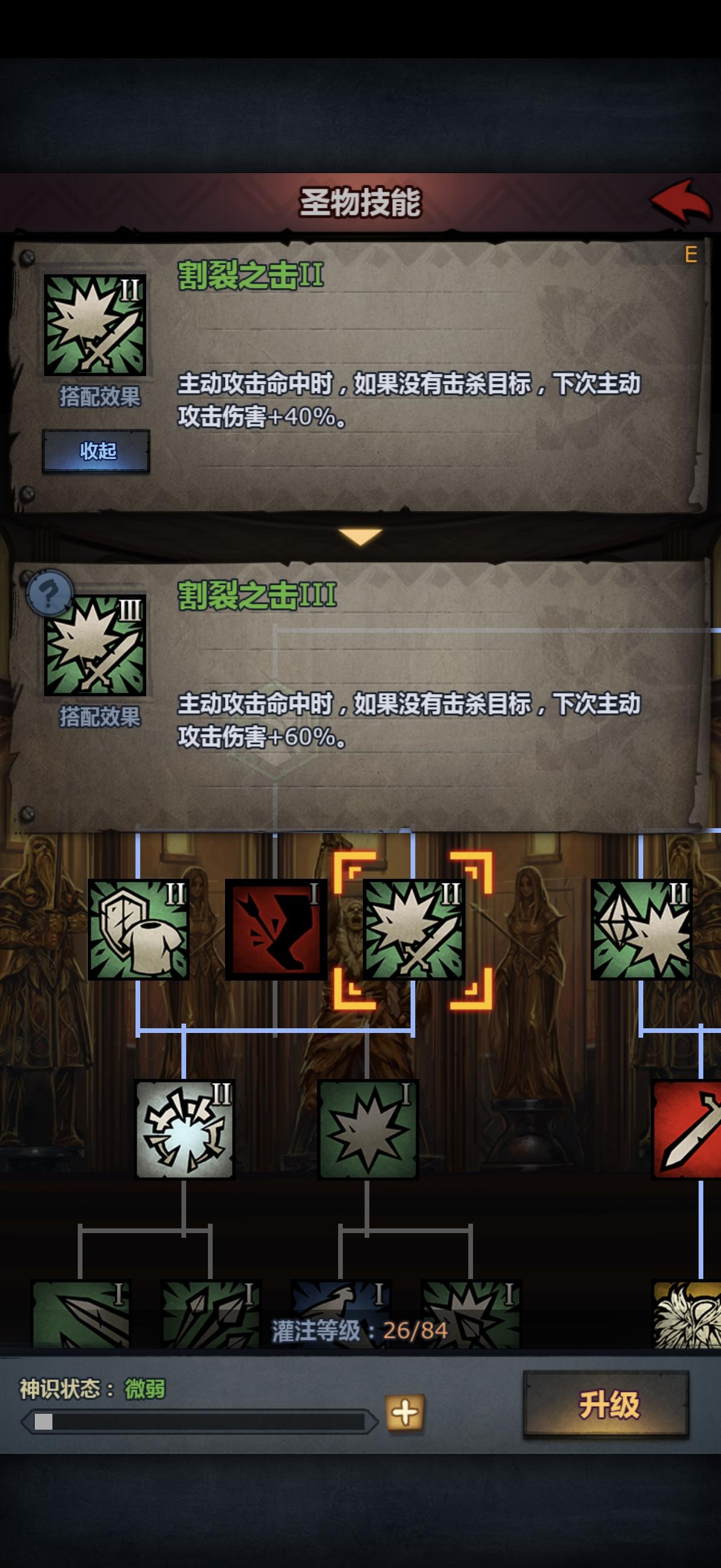 武器:权杖。每有1ap加百分之5/10/15伤害。满级非常恐怖加成。推荐3级。