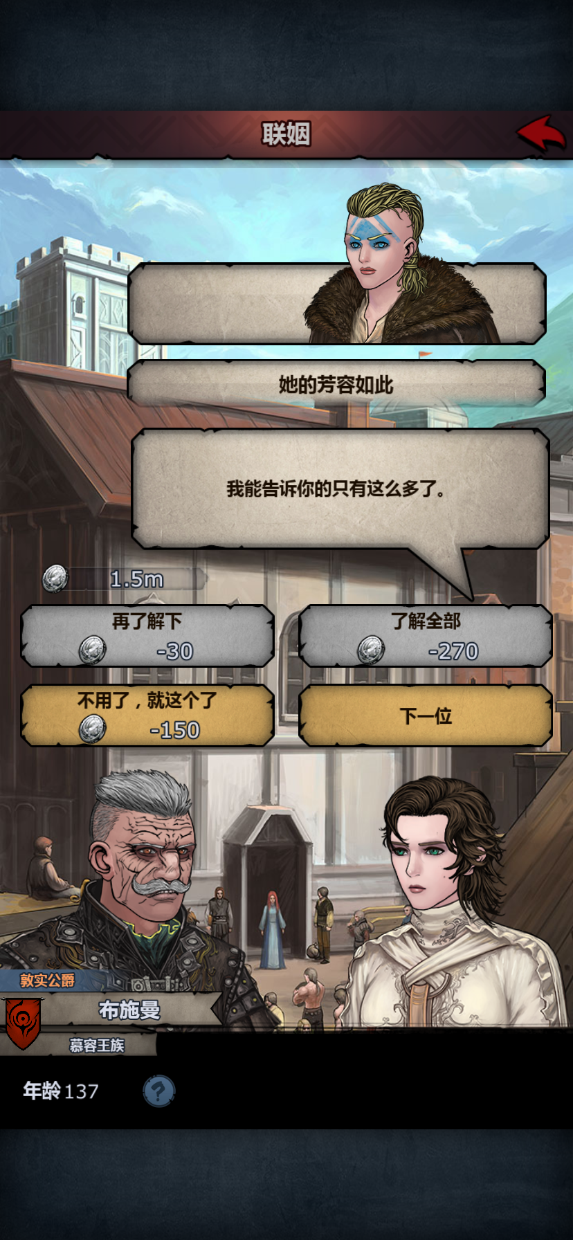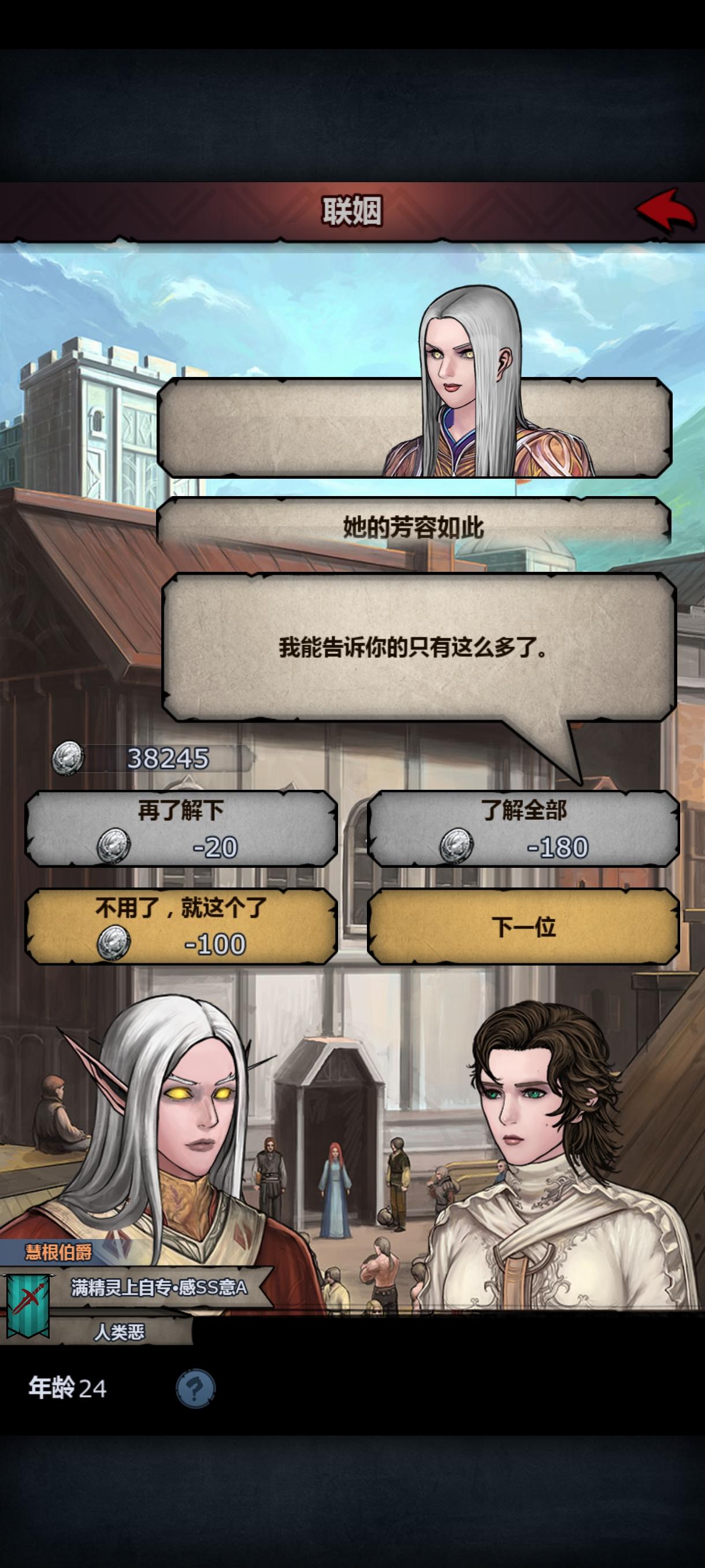 两个长弓刚100级,已经55岁开始衰老了。小公主好像被我玩废了九十多级大剑还没能精通。城堡刚十级。最高伯爵,声望刷了一个塞宁信赖,刷吐了快。下一代没啥有A的苗子,顶多有B。已经找到两个工具人练了两个传家宝,一个单手剑8力12敏,一个双手杖12感8意。大佬们,现在我该干啥,接着练全一套一级三转传家宝吗,还是有别的什么要干的