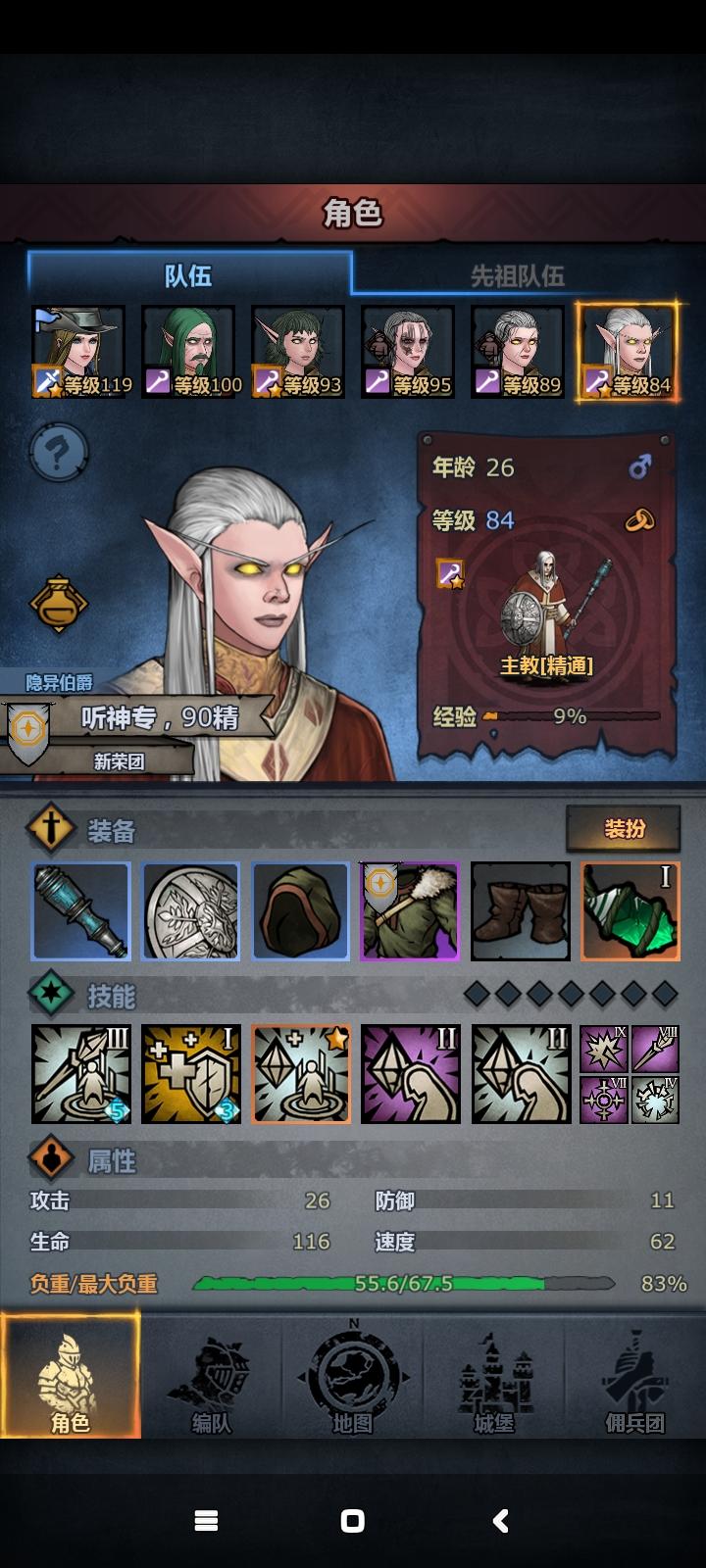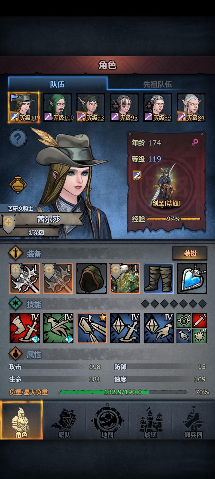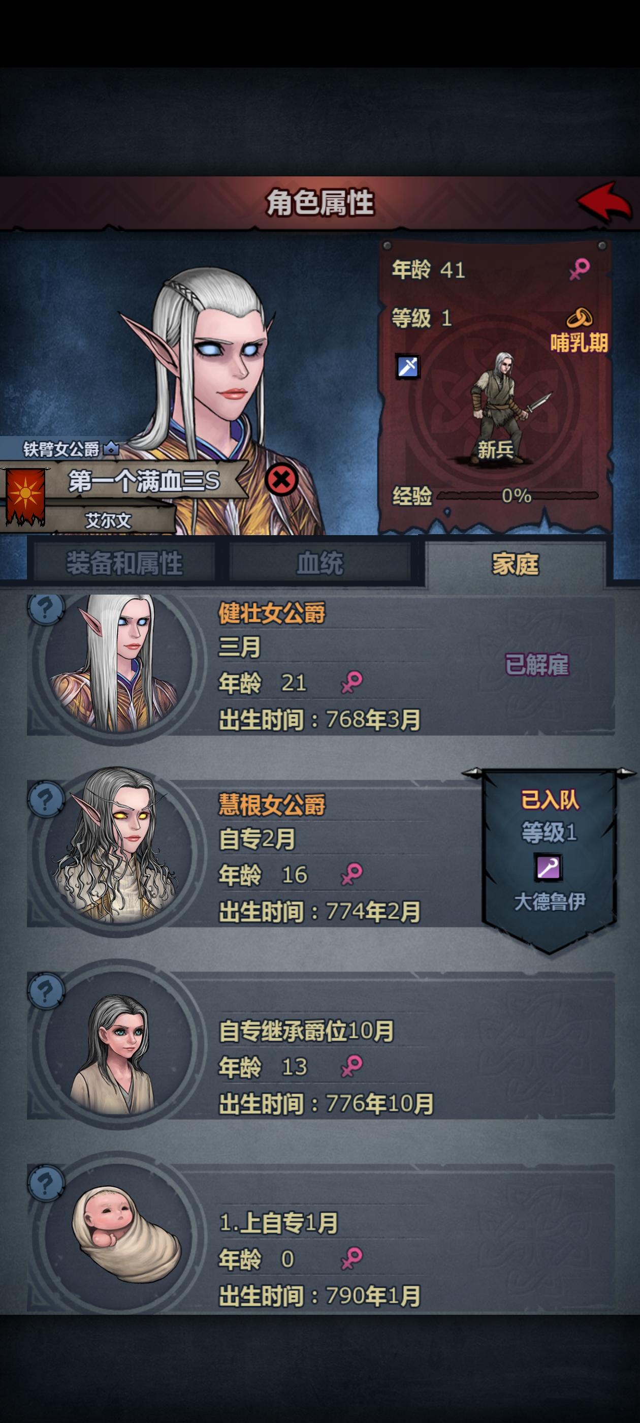 目前刚通主线没多久,阵容是盾勇小公主+两长弓+沈丰+诗人+感意传家宝工具人,基思和萨姆两个长弓快要老了,突然发现第二代没有几个苗子可以用,就这三个属性勉强能看的第一个是基思的女儿,后两个是光头的
