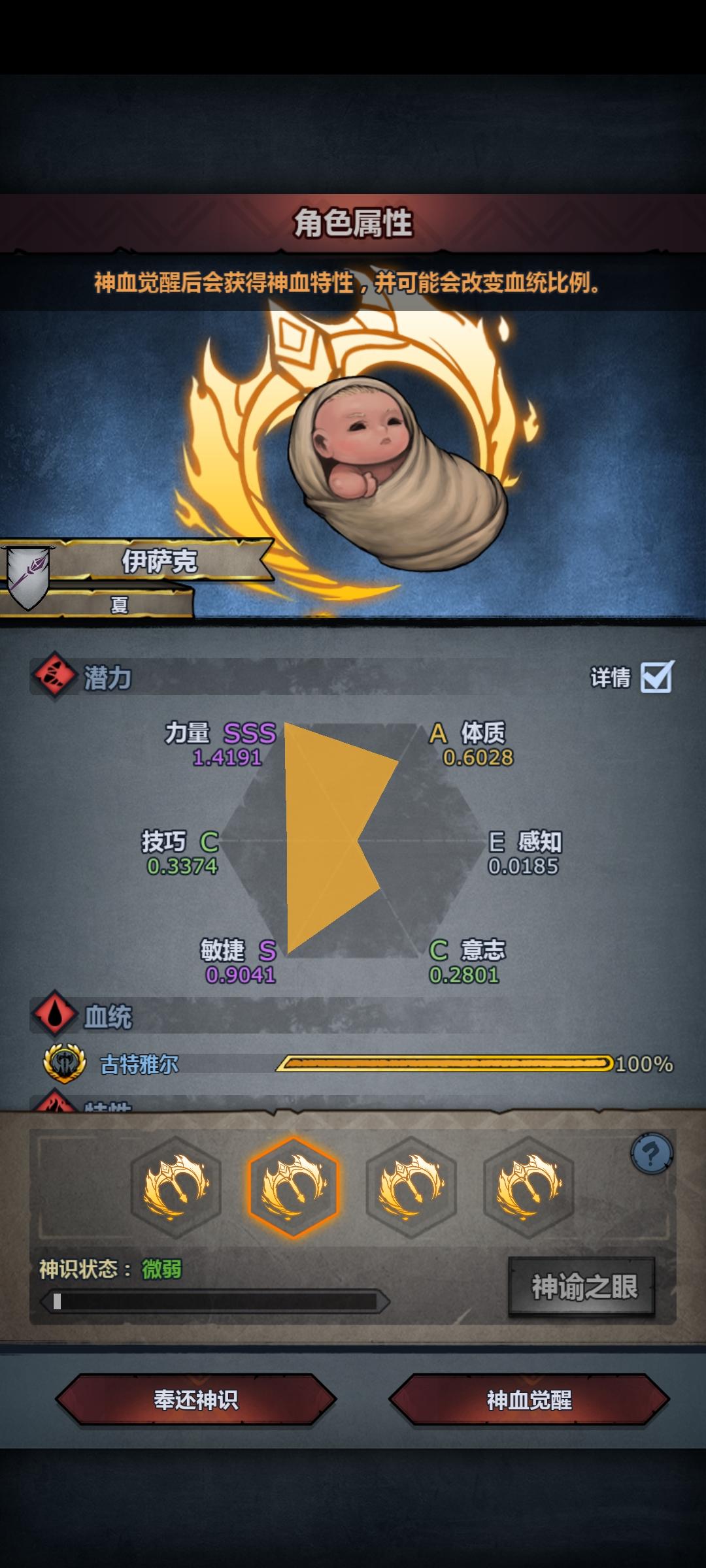 我这个第一次玩神子,想问下玩大剑,吃什么职业的属性成长好一点?我大剑和皮甲都60级了,和版本脱节有点久,现在堆力量的收益高还是技巧的收益高?
