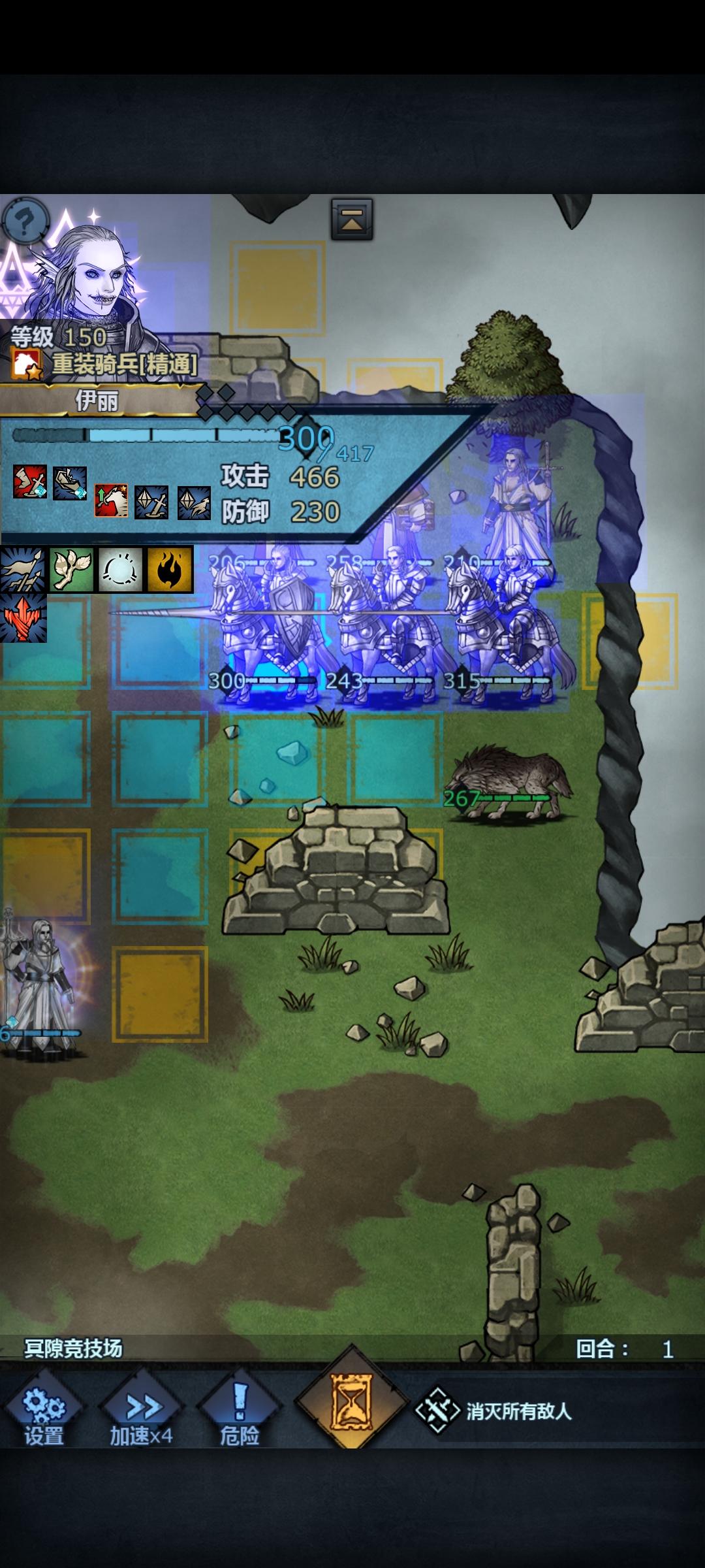 第一回合重装骑兵300滴血,第二回合,他就变成了300/417滴血。