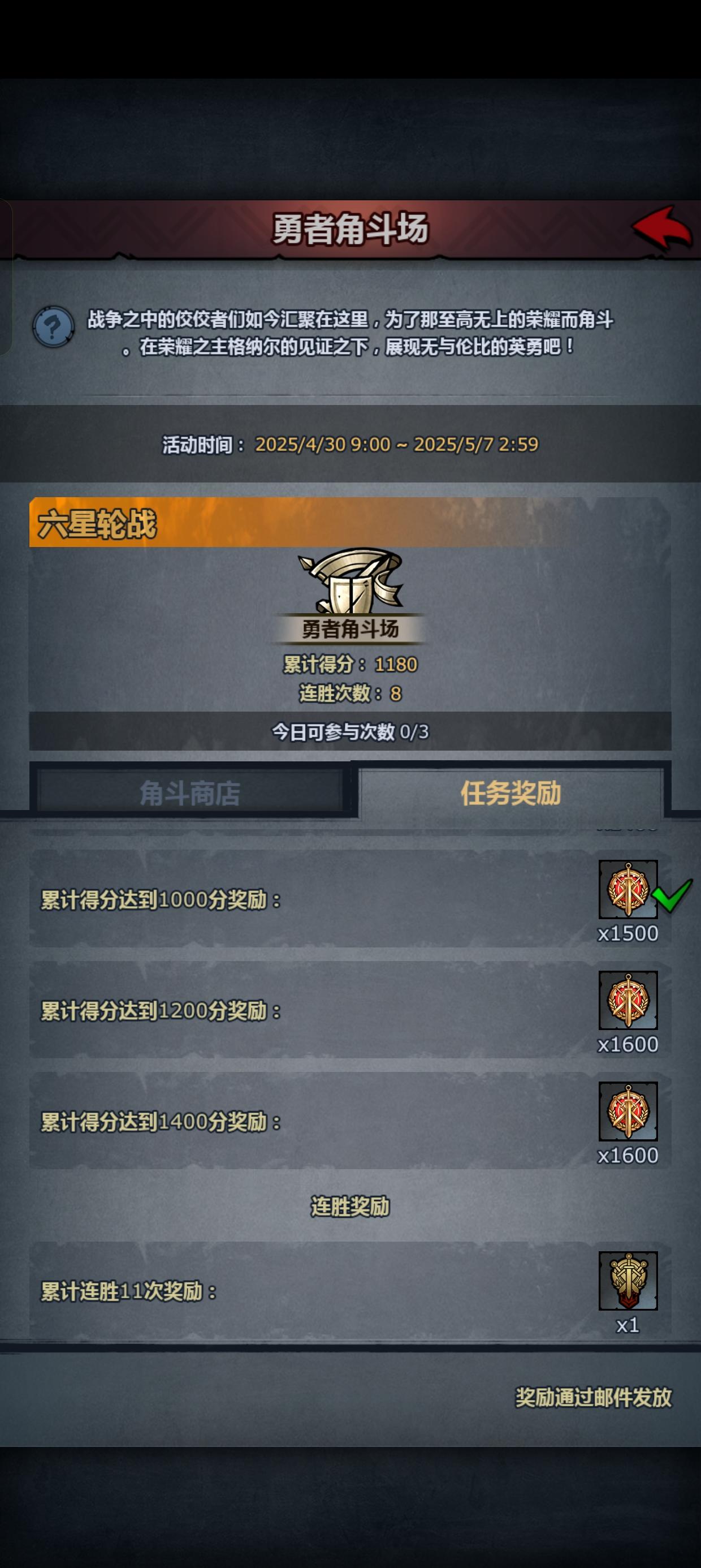 话说连胜能接着下一次角斗场开启吗,还有这个奖章月底不会清零吧