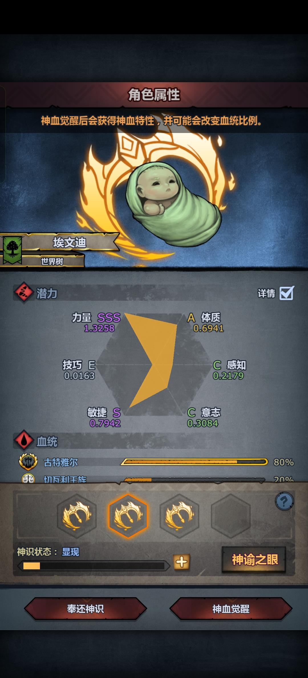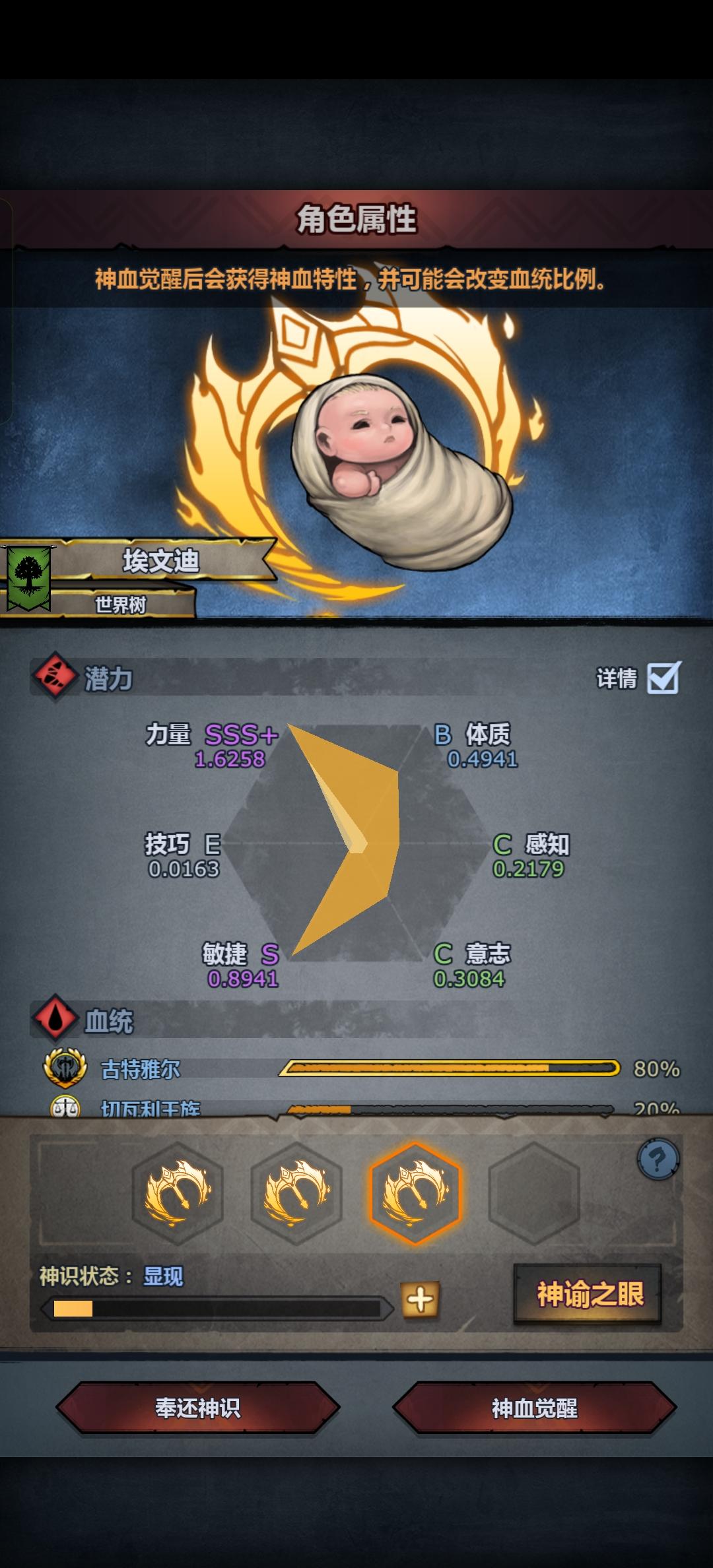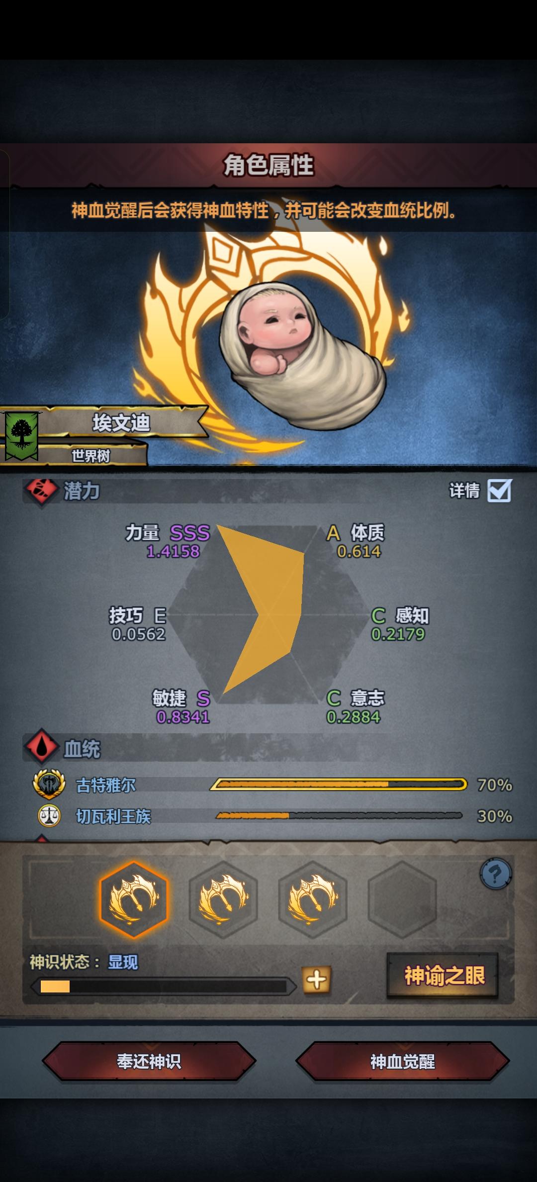 神力没尊混不了也接近极限了感觉可以点一下看特性