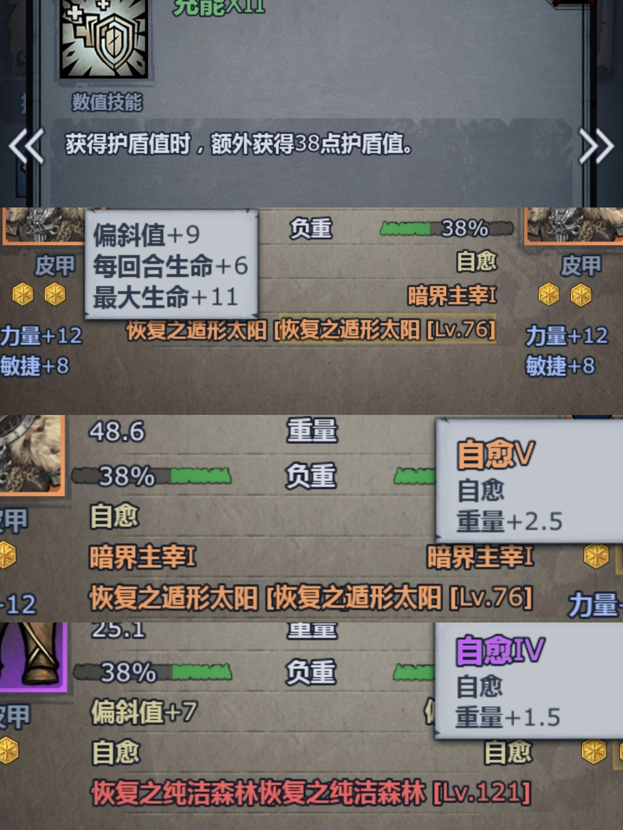 这个很多攻略都讲过了,具体就是精英勇士小技能配合荒芜甲联动,配合回血符文每回合大量回盾。头/甲/脚/饰品4个符文,甲/脚治愈改造,甲可以洗入屏障,脚可以多洗一个森林。仅仅算充能小技能就可以提供6*38=228 点护盾