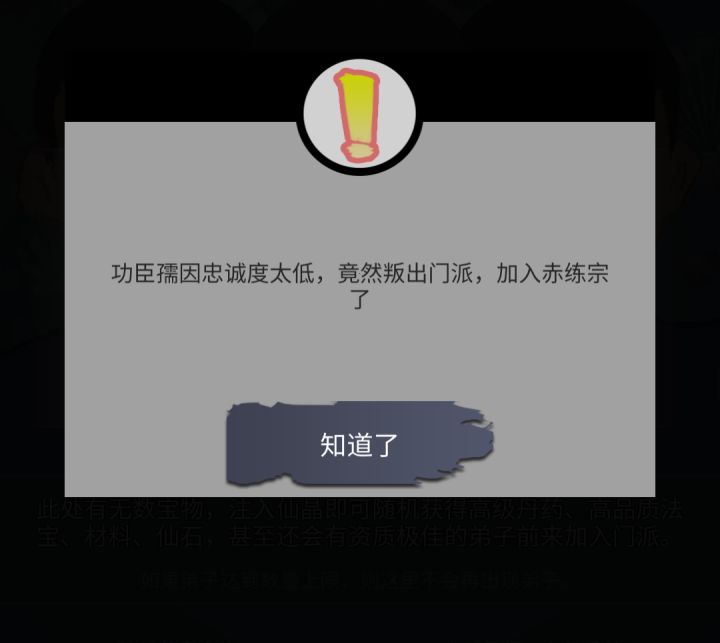 遇到一个奇怪的事情,偶然查看负责外出打探消息的弟子,有一个返虚境的名为???的弟子,把他召回,在宗门里又找不到他,之前也会看到提示消息说“???的忠诚度降低”,有大佬可以解释一下怎么回事吗?