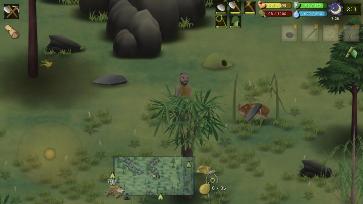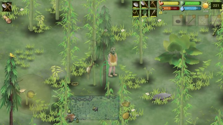 背景:纯新手,不会打猎,全程没打到过任何一个猎物。其它图:附地图:绿色是竹林,蓝色是湖,黄色是放大陷阱抓野兔和鹿(我没抓到过鹿,有人抓到过)的重点区域。稍稍入手之后建议买个地图,地图限时五分钟。1.工具顺序:斧头(砍竹子等)、锄头(挖地瓜)、竹竿套索(摘鸟蛋)、石刀、其它根据个人需求。2.营地:第一个营地选在右上的湖上方,晚上喝水or从水里取渔网都方便,背靠竹林,竹林是资源最丰富的地方,