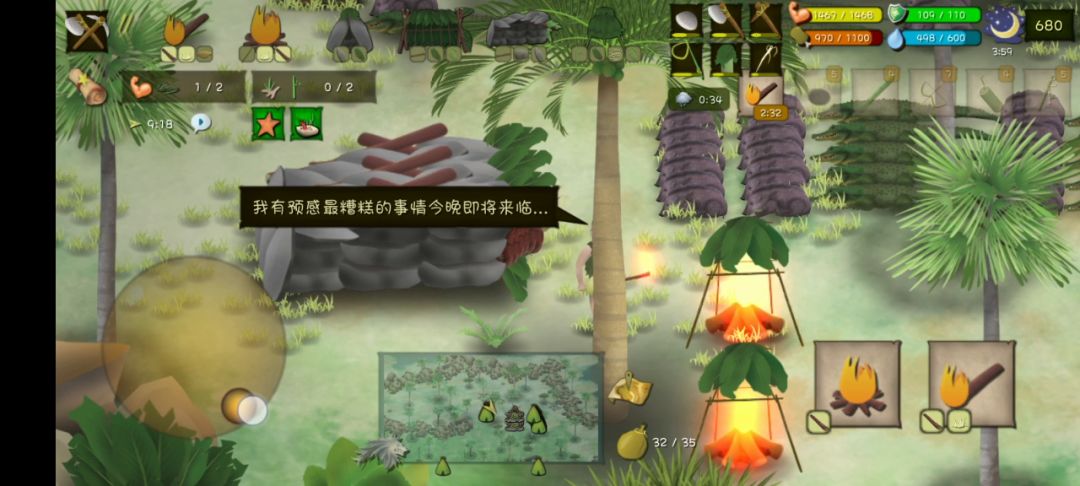 速度不算太快,被偷了点吃的,不过影响不大(杀一只鳄鱼就赚回来了),各位不太会杀危险动物的萌新可以借鉴一下。