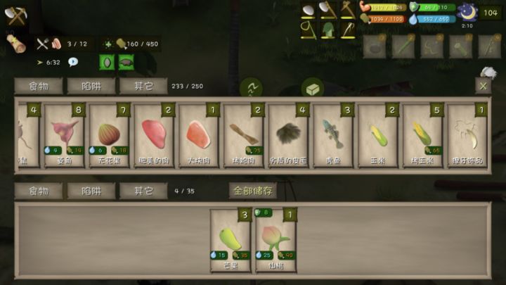①营地:建议选在入海口附近。附近资源点丰富,有两个狮子刷新点,六个大木头刷新点,上面有竹林可以抓蝙蝠,有土地有棕榈叶林,取水,去海边抓鱿鱼寄居蟹都方便。②陷阱:家旁边做一个猎杀陷阱,狮子刷新的时候地图会显示,直接去引回来猎杀就行了。ps:本来开了兽袭,后来发现杀太多了家里放不下就关了,个人觉得没必要开。渔网:可以放在棕榈叶林和1号岛的中间岸边,这里有鱼的刷新点,成功率很高。小型捕鱼陷阱:顺
