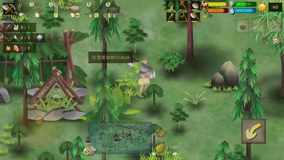 猎杀陷阱,如果狼进去是可以在两秒内挣脱的,没挣脱期间你可以用箭射死狼,而且陷阱也会坏掉,可以回收重新制作第30天有一波狼,打不死的话你就会丢东西第77天有一波狼,隐藏任务1,老人与狗,老人在中心位置的V里面,需要带水给他,然后他会告诉你他的狗在最西面,右边红色是狗的位置,需要带包扎的东西和吃的,最后带着狗到老人的地方任务完成隐藏任务2,甲鱼在最左边的圈圈,从石头缝进去,要带一张大的渔网一两天