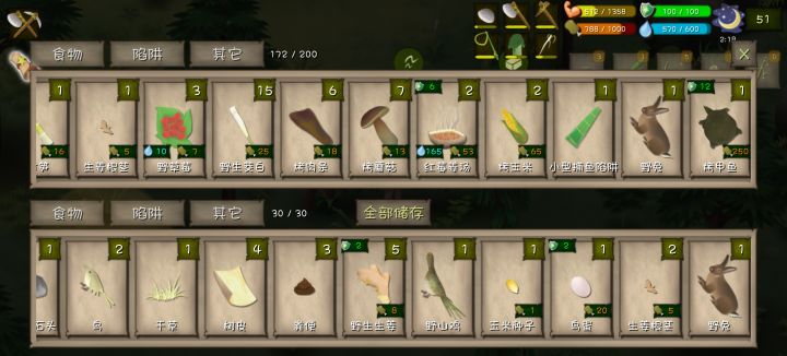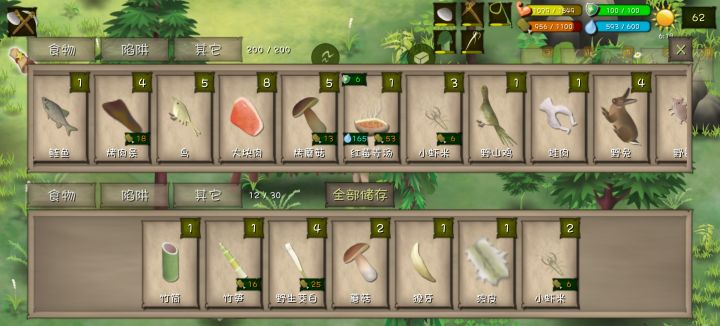 目前62天 32天的时候抓到第一头鹿然后是野兔 甲鱼两头🐺野鸡鱼什么的(看图)不知道算好还是不好 但是挺好玩的 很上瘾 第一个星期是真的烦😅差点饿死了 后面就好了反正现在肉很多 不会饿死了😂