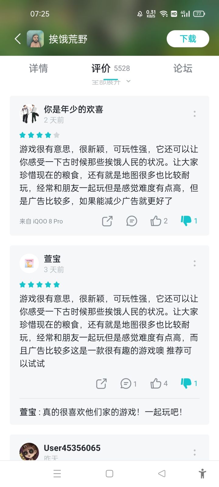 之前实在ios上玩的这个游戏,玩了挺久,到最后健康值就上不去了,还有抓青蛙的那个操作改一下会更好,找东西蛮费劲,还费时间,要是能跑就好了,被狼追还不慌不忙的走的死慢,我都替他着急