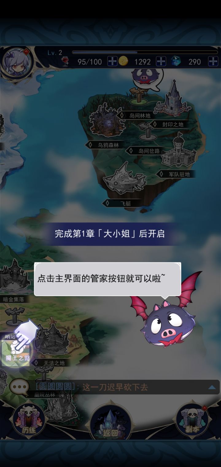 不小心进入这个界面,新手教程强制让点这个关键点了显示未开放。。完成第一章大小姐后开放