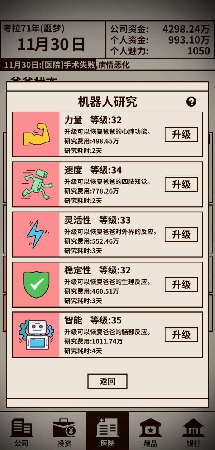 爸爸活下去(×)儿子活下去(×)手机活下去(√)刚刚快一年,四个公司全研究+船厂量子厂半研究,老爹都弄出两个笑脸了,离通关最多半个月,然后卡死了……退出重进就一直卡在这里加载到闪退希望手机没事🙏物理层面上不能通关的游戏
