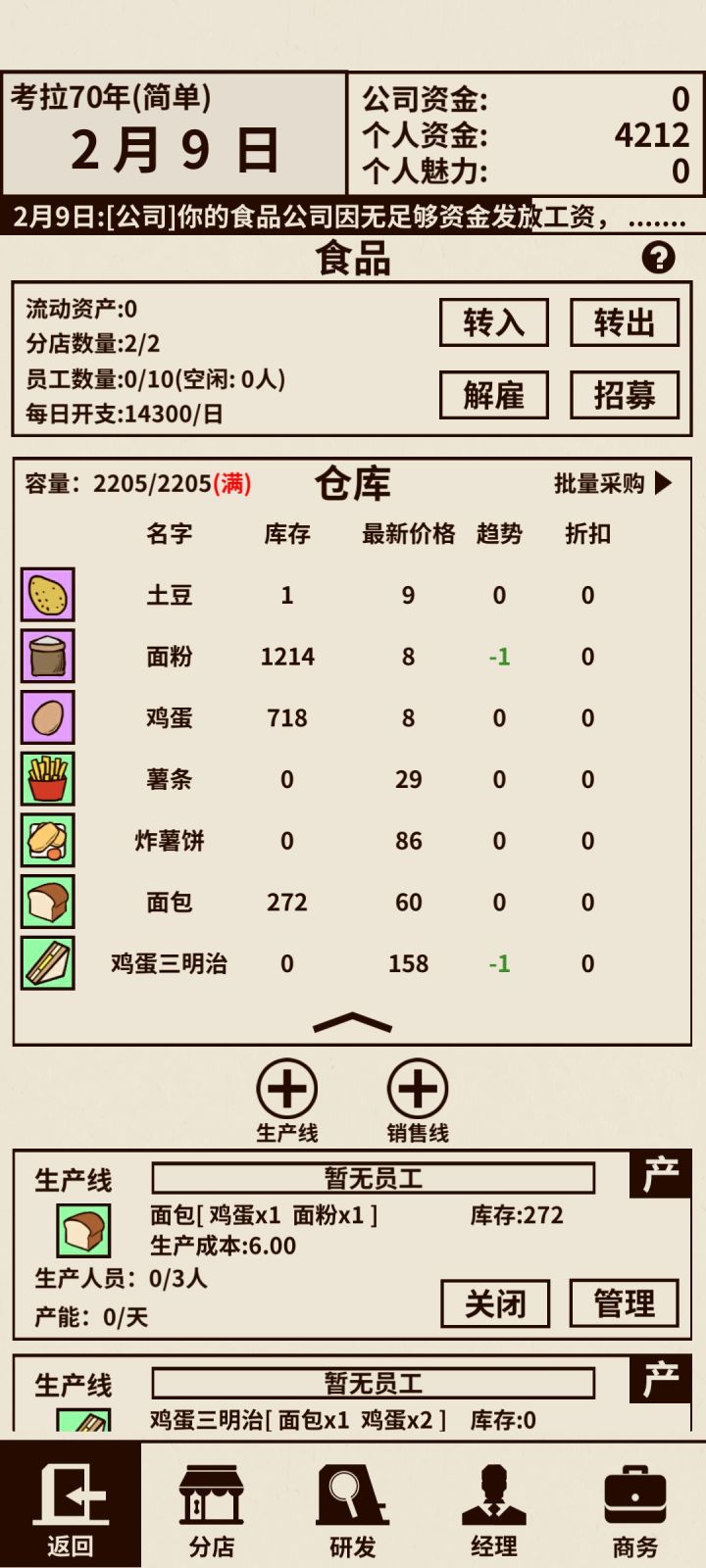 前期莫名其妙就库存满,然后一直销售不出去,这是所有员工离职后的截图,重新扩大仓库容量,再招人分配下去就又可以了