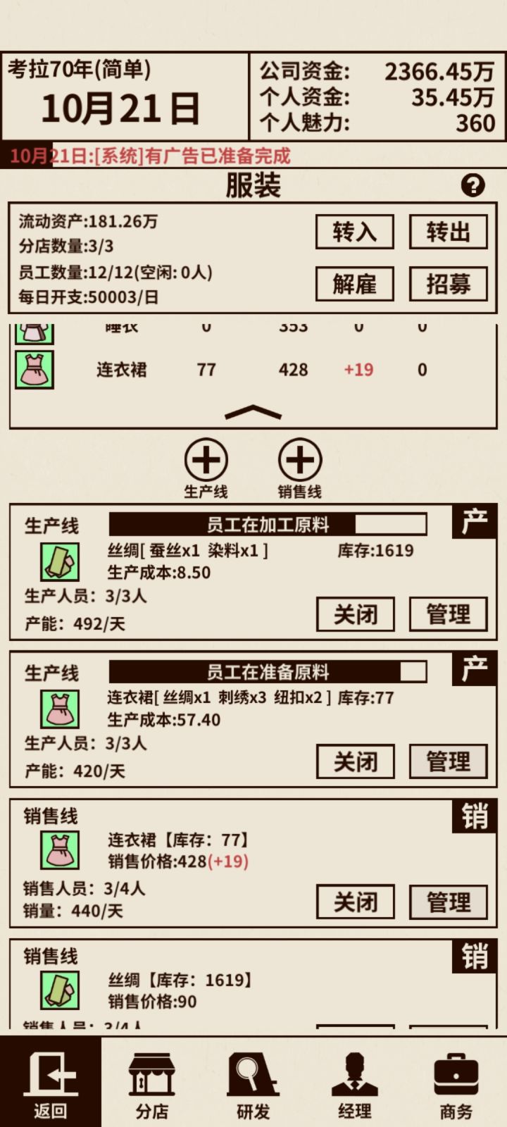 电器公司开起来了,然后做到低端手机后发现并不能切换出售商品种类,我依然还在卖高级屏幕,点了切换按钮一点反应都没有
