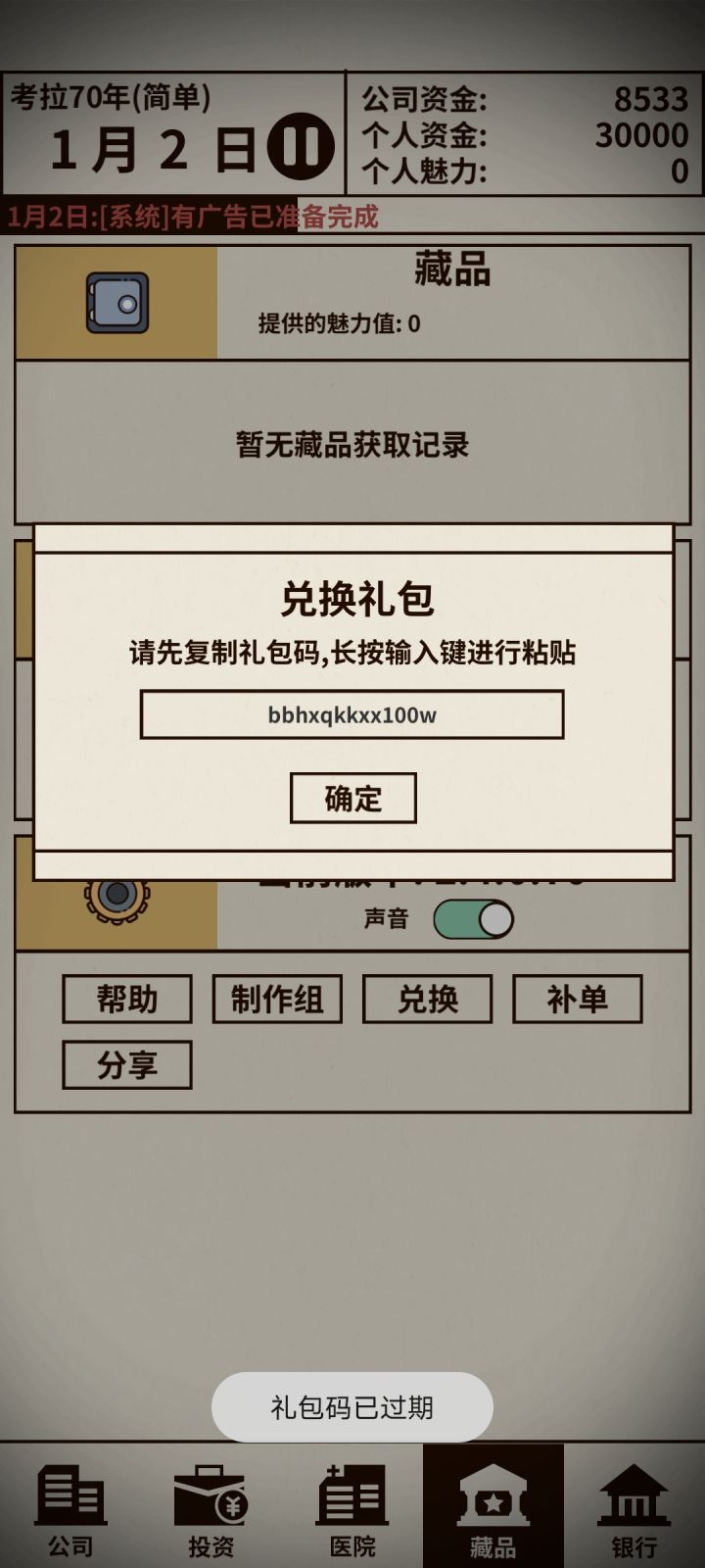 你好 如果这款游戏还在运营有更新或者可以修复bug可以回答一下我吗 我愣是看了一下午广告什么也没加 😓😓😓