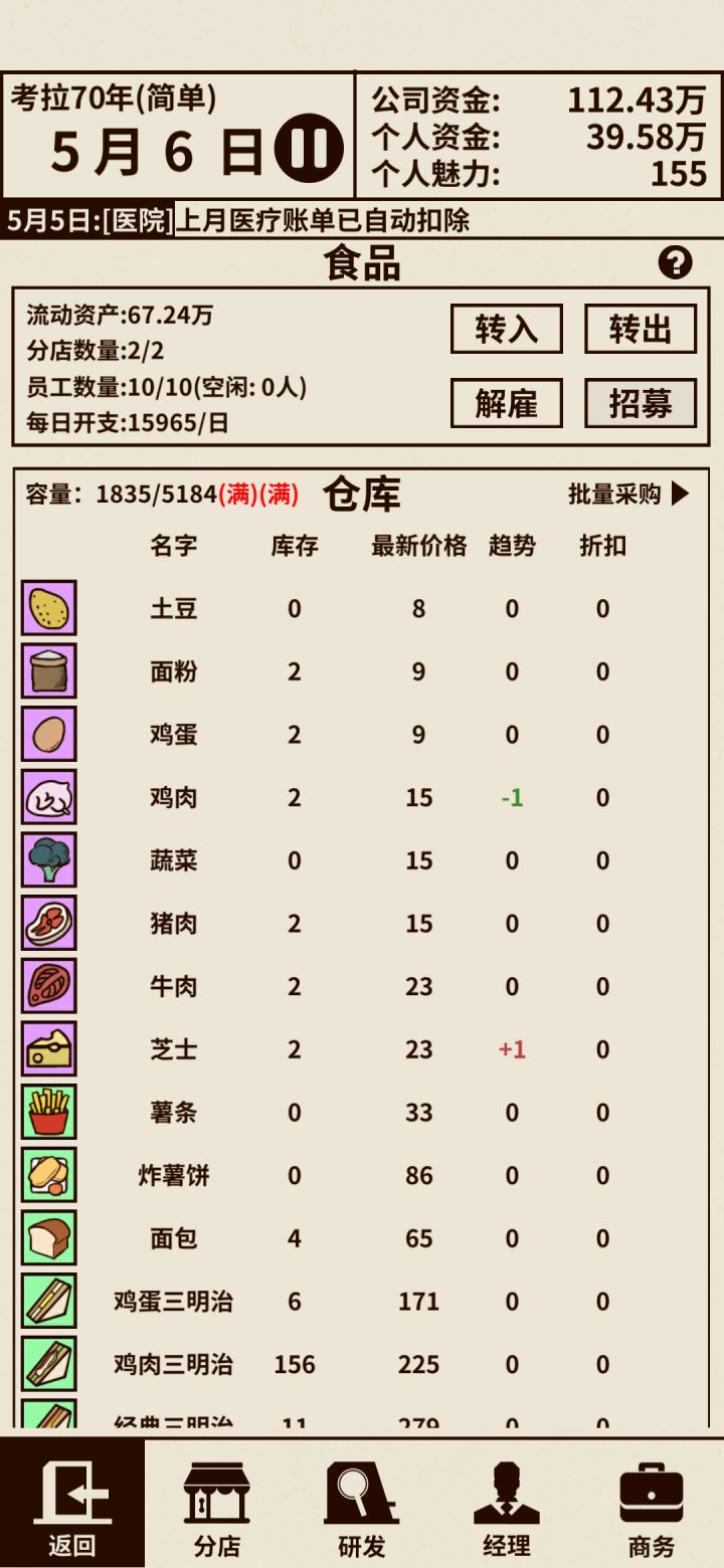 没买什么东西就满了,然后刚进去的时候,仓库显示9999好几个9,不过过一会就好了