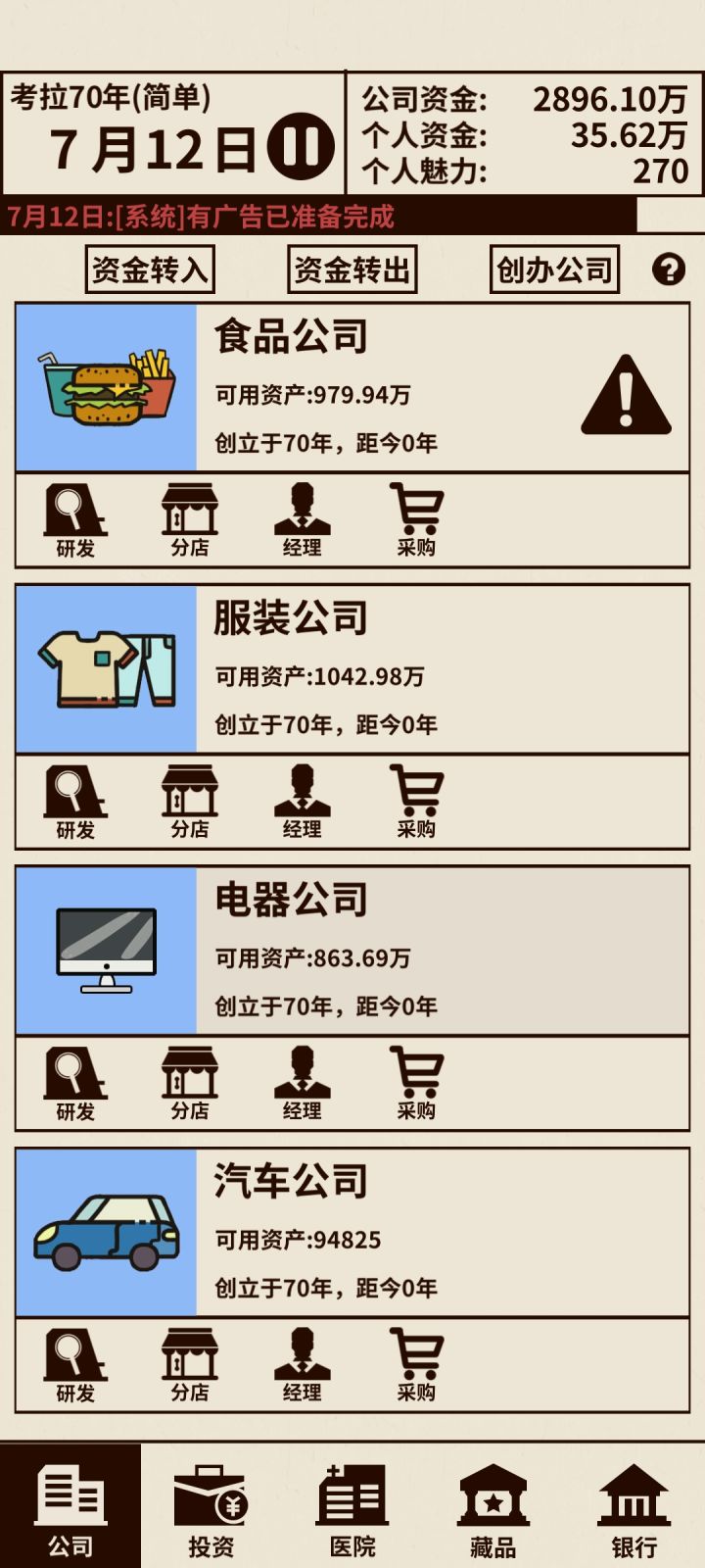 1. 游戏到后期很容易卡顿 对于低配手机十分不友好 (710很卡)建议 优化一下减少冗余的数据2.生产线销售线不搭配 前期几个公司生厂线和销售线可以搭配完美 强迫症表示满意 但是后面从汽车公司开始生产链条以及生产线不匹配了 开始乱了不能做到产能=销售能力建议 建设完备的生产销售系统 比如讲汽车总生厂线数变为8个 这样就可以做到 4个生产链条(3个造车 1个卖车)完成整个过程3.拍卖行过于浪