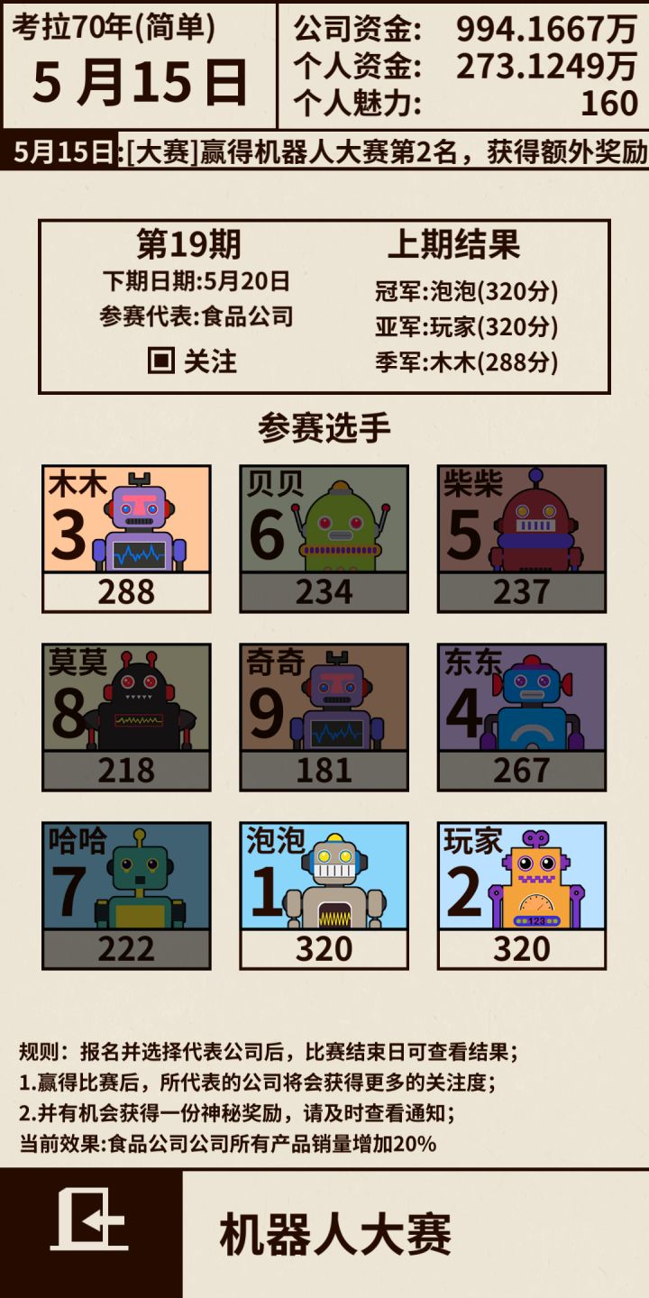 1.建议不同分店是不是可以卖不同的产品?2.店铺做能不能同时卖几样产品?3.即使同时开设几条生产线,因为店铺只能卖一种产品,所以生产线也只能生产一种产品4.公司资金和个人资金转换,麻烦需要经常点5.系统不及时提醒采购原料参加机器人大赛,反而经常提醒去银行点广告。。6.只是简单难度,赚钱也远远赶不上花钱