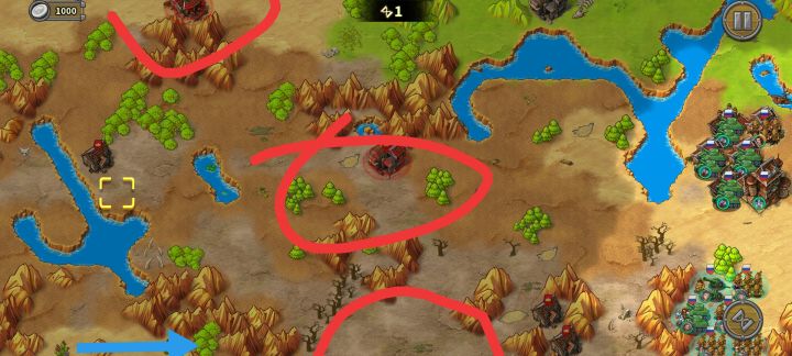 更新完还没体验完好多人都说这关特别难我就直接跳过前面的来打这关了简单的摸索了一下把机制搞清楚了就会好打很多一共两张图第一张是机制占领绿圈1右下红1会开门占领绿圈2左上红2会开门占领红圈3中间大围墙会开门需要注意右上红圈只有送的艾拉可以过河自己的将领是无法过河的(补充一下自己造的小兵也可以过河,所以艾拉可以不折返回去)第二张是不强拆的大致路线(路线不唯一)主力部
